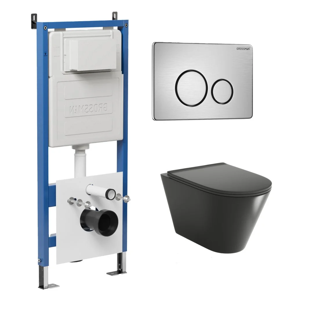 Комплект инсталляции GROSSMAN 900.K31.01.000 с клавишей смыва 700.K31.05.12M.12M хром сатиновый и унитазом GROSSMAN GR-4477BMSQ арт.97.4477BMSQ.05.12M