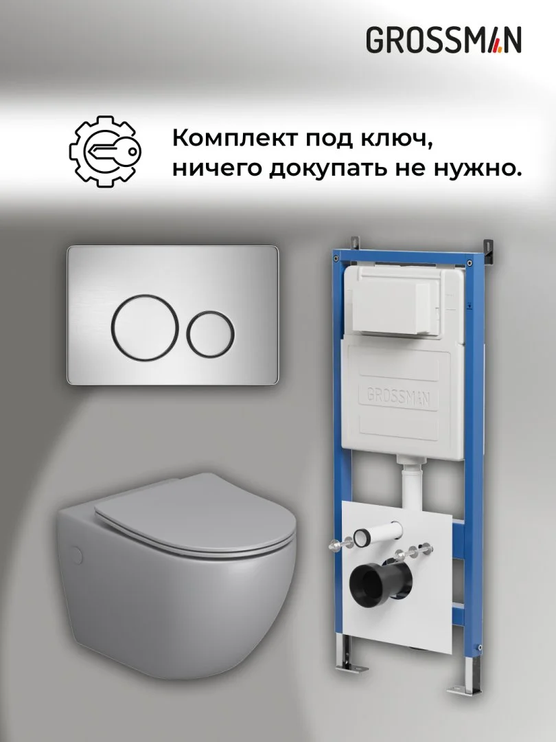 Комплект инсталляции GROSSMAN 900.K31.01.000 с клавишей смыва 700.K31.05.12M.12M хром сатиновый и унитазом GROSSMAN GR-4411GLMS арт.97.4411GLMS.05.12M