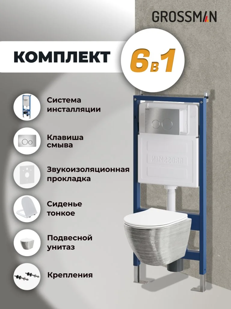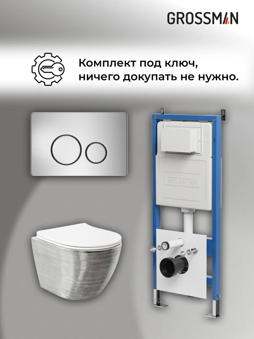 Комплект инсталляции GROSSMAN 900.K31.01.000 с клавишей смыва 700.K31.05.12M.12M хром сатиновый и унитазом GROSSMAN GR-4455SWS арт.97.4455SWS.05.12M