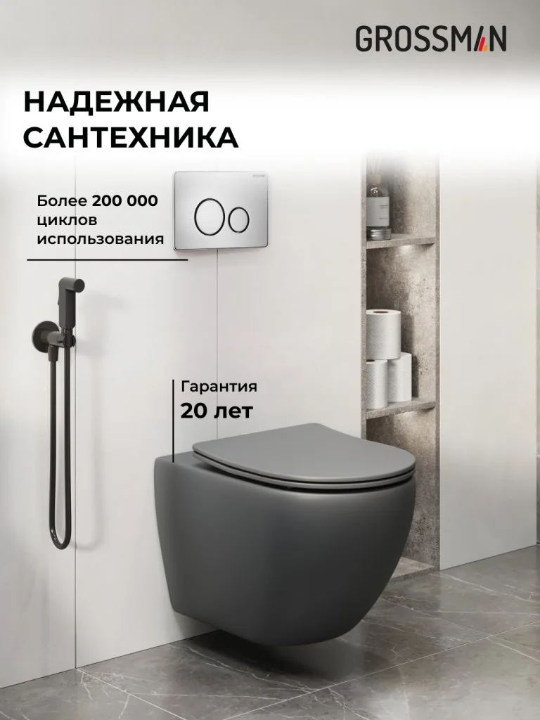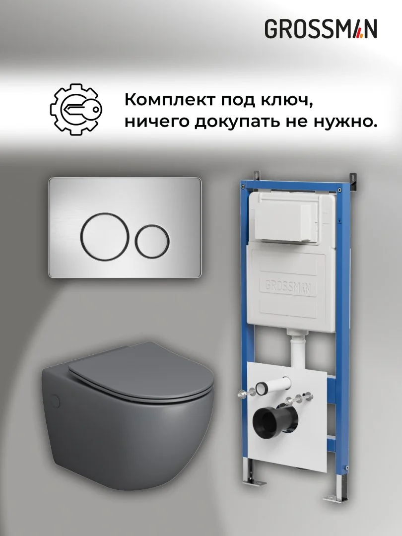 Комплект инсталляции GROSSMAN 900.K31.01.000 с клавишей смыва 700.K31.05.12M.12M хром сатиновый и унитазом GROSSMAN GR-4411GMS арт.97.4411GMS.05.12M