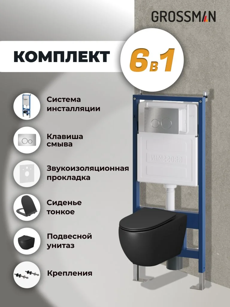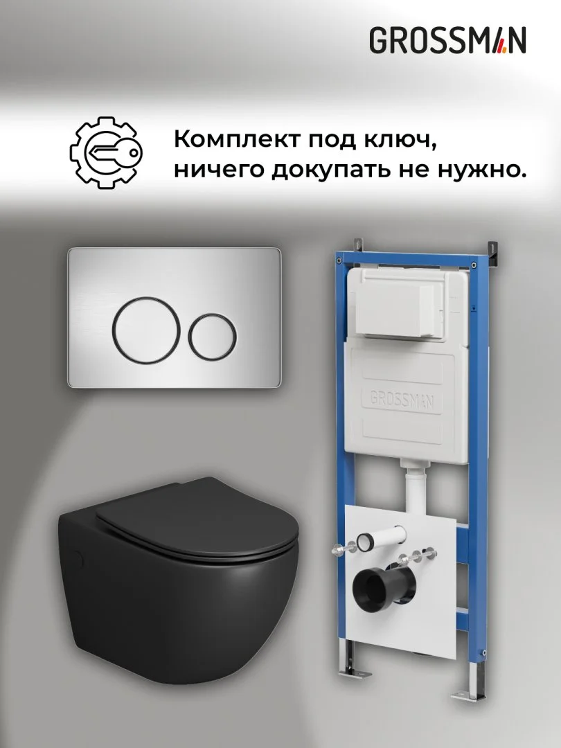 Комплект инсталляции GROSSMAN 900.K31.01.000 с клавишей смыва 700.K31.05.12M.12M хром сатиновый и унитазом GROSSMAN GR-4411BMS арт.97.4411BMS.05.12M