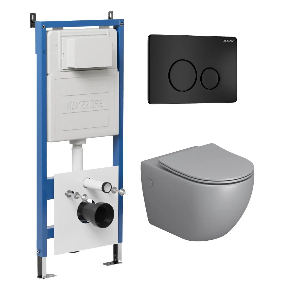 Комплект инсталляции GROSSMAN 900.K31.01.000 с клавишей смыва 700.K31.05.21M.21M черный матовый и унитазом GROSSMAN GR-4411GLMS арт.97.4411GLMS.05.21M