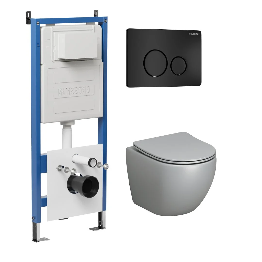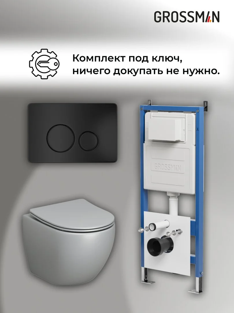 Комплект инсталляции GROSSMAN 900.K31.01.000 с клавишей смыва 700.K31.05.21M.21M черный матовый и унитазом GROSSMAN GR-4455GLMS арт.97.4455GLMS.05.21M