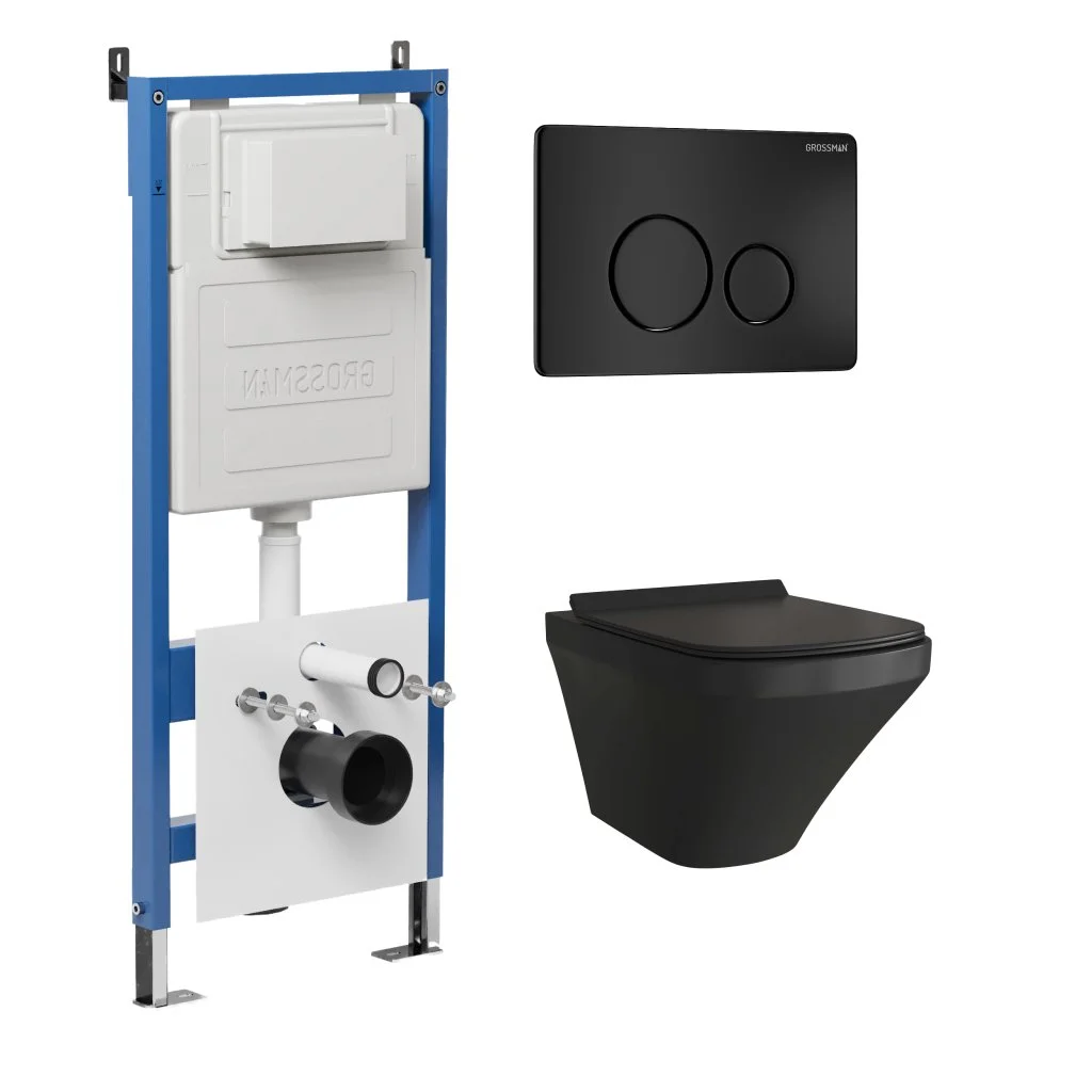 Комплект инсталляции GROSSMAN 900.K31.01.000 с клавишей смыва 700.K31.05.21M.21M черный матовый и унитазом GROSSMAN GR-4440BMS арт.97.4440BMS.05.21M
