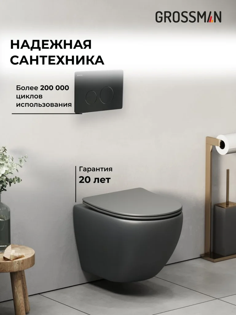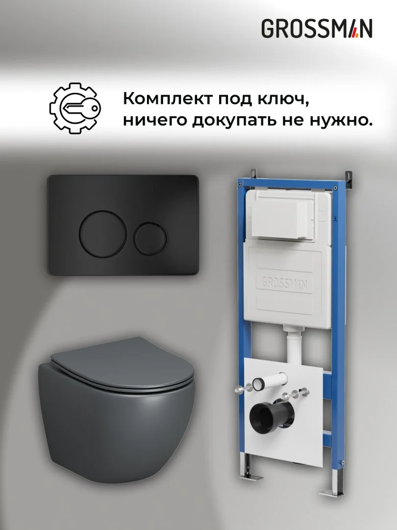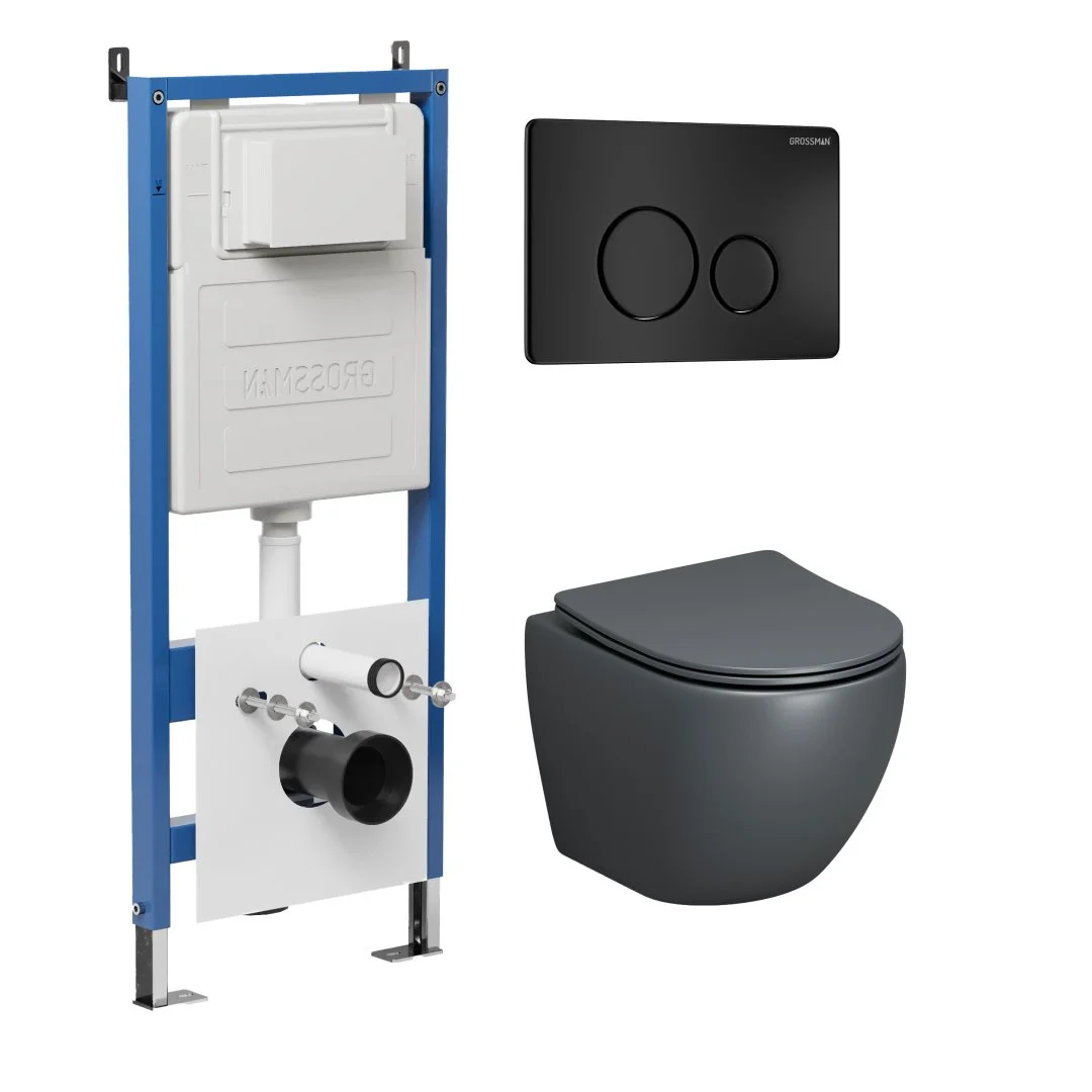 Комплект инсталляции GROSSMAN 900.K31.01.000 с клавишей смыва 700.K31.05.21M.21M черный матовый и унитазом GROSSMAN GR-4455GMS арт.97.4455GMS.05.21M