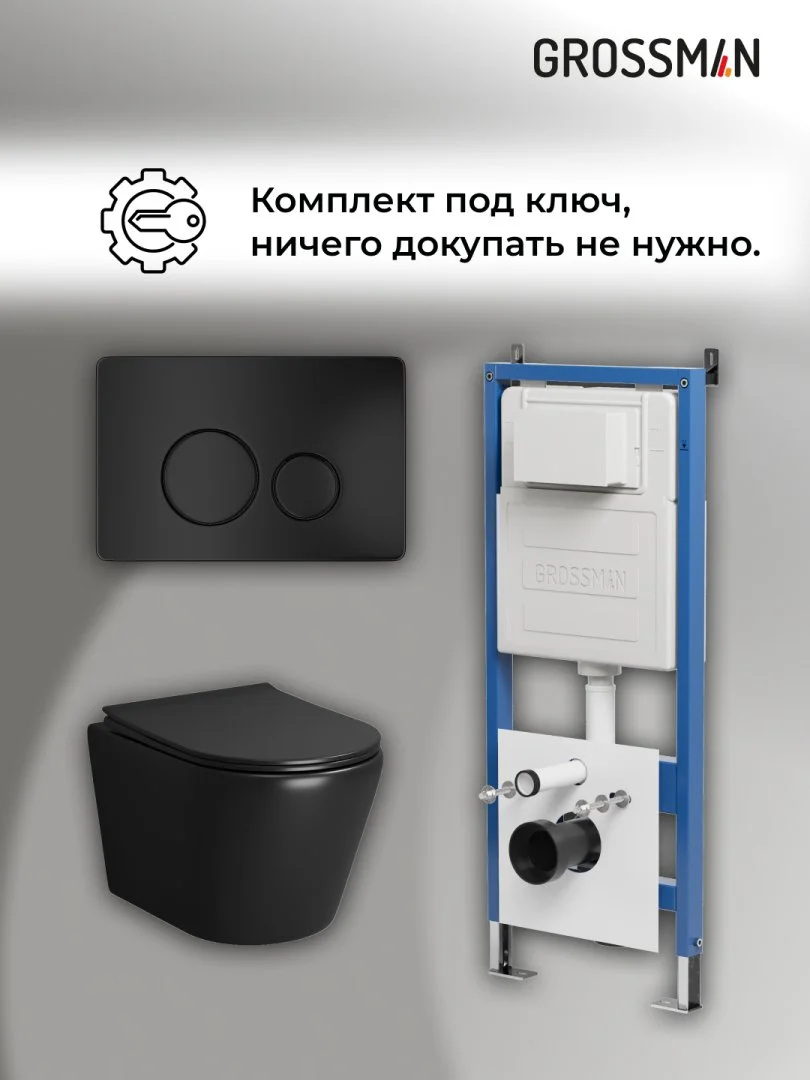 Комплект инсталляции GROSSMAN 900.K31.01.000 с клавишей смыва 700.K31.05.21M.21M черный матовый и унитазом GROSSMAN GR-4478BMS арт.97.4478BMS.05.21M