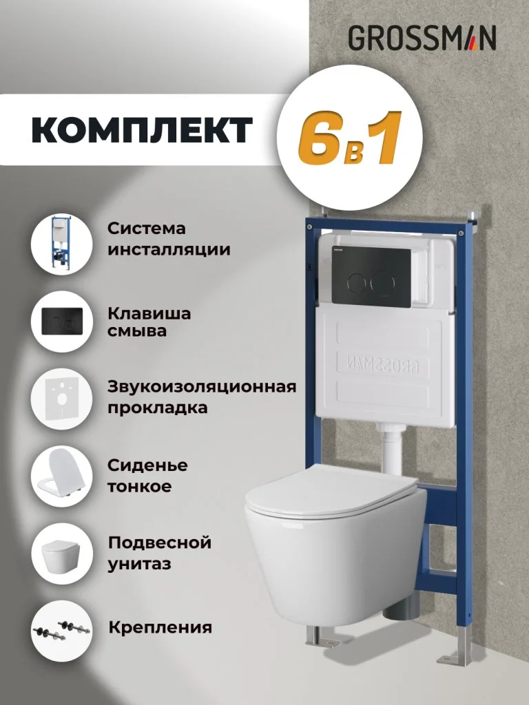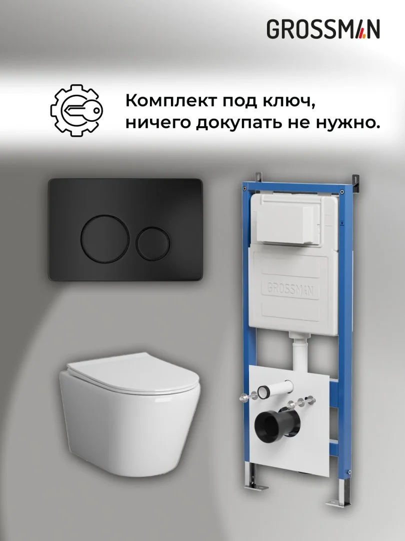 Комплект инсталляции GROSSMAN 900.K31.01.000 с клавишей смыва 700.K31.05.21M.21M черный матовый и унитазом GROSSMAN GR-4478SQ арт.97.4478SQ.05.21M