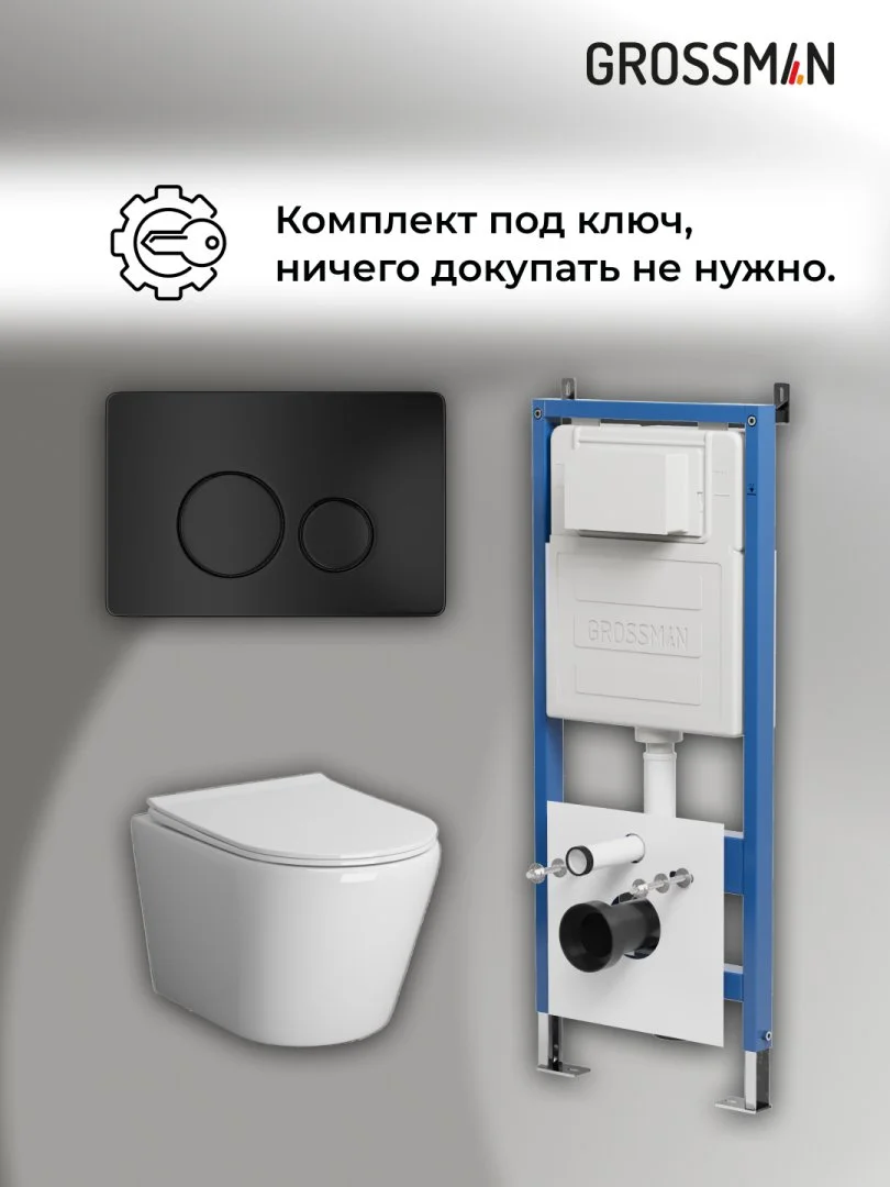 Комплект инсталляции GROSSMAN 900.K31.01.000 с клавишей смыва 700.K31.05.21M.21M черный матовый и унитазом GROSSMAN GR-4478S арт.97.4478S.05.21M