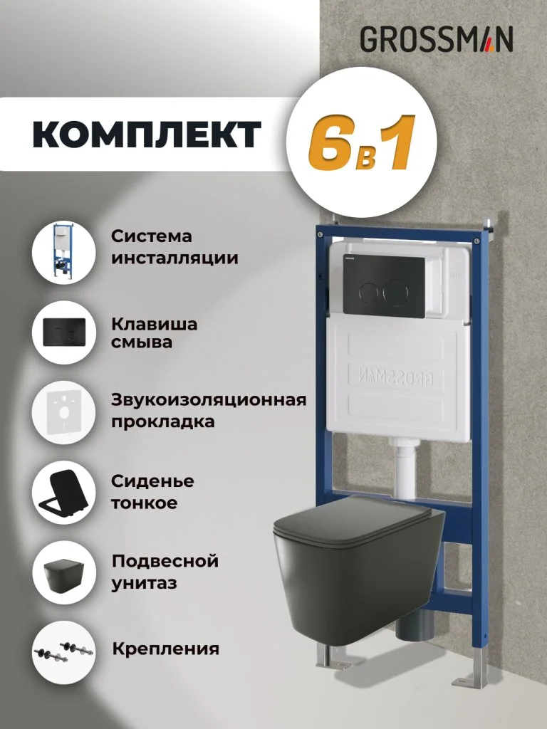 Комплект инсталляции GROSSMAN 900.K31.01.000 с клавишей смыва 700.K31.05.21M.21M черный матовый и унитазом GROSSMAN GR-4441BMS арт.97.4441BMS.05.21M