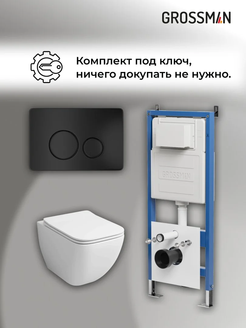 Комплект инсталляции GROSSMAN 900.K31.01.000 с клавишей смыва 700.K31.05.21M.21M черный матовый и унитазом GROSSMAN GR-4447S арт.97.4447S.05.21M