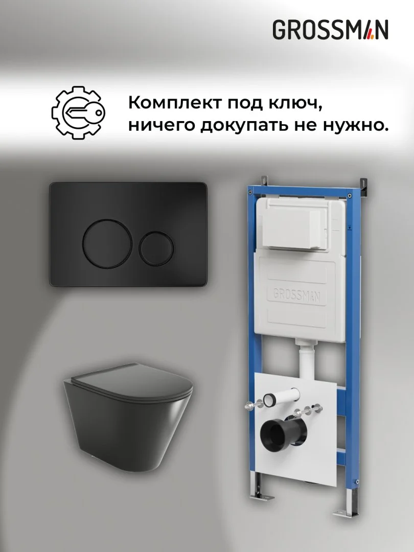 Комплект инсталляции GROSSMAN 900.K31.01.000 с клавишей смыва 700.K31.05.21M.21M черный матовый и унитазом GROSSMAN GR-4477BMS арт.97.4477BMS.05.21M
