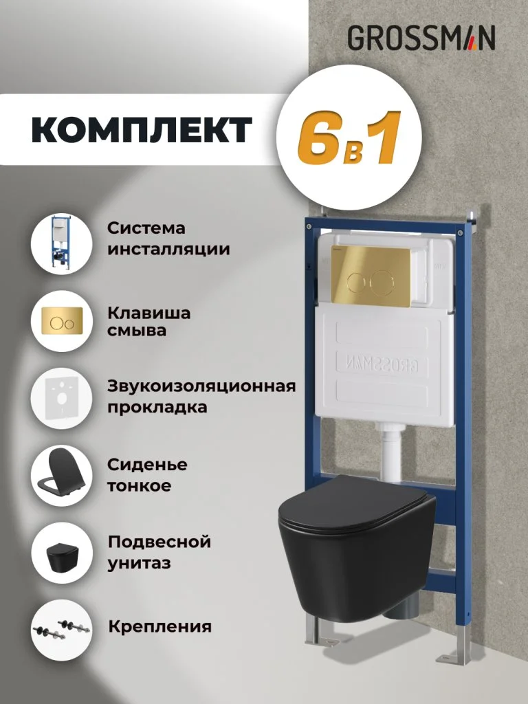 Комплект инсталляции GROSSMAN 900.K31.01.000 с клавишей смыва 700.K31.05.30M.30M золото и унитазом GROSSMAN GR-4477BMSQ арт.97.4477BMSQ.05.30M