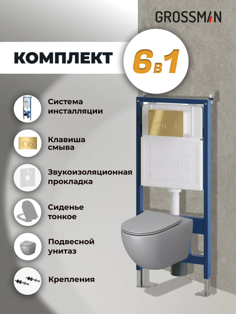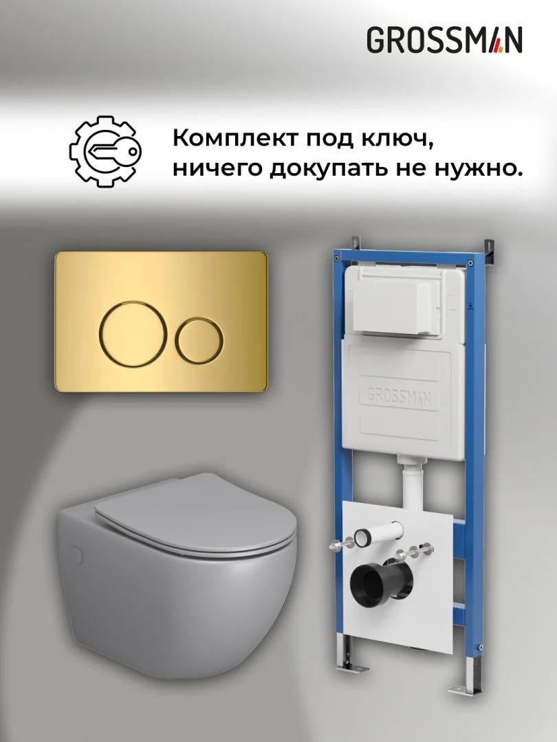Комплект инсталляции GROSSMAN 900.K31.01.000 с клавишей смыва 700.K31.05.30M.30M золото и унитазом GROSSMAN GR-4411GLMS арт.97.4411GLMS.05.30M