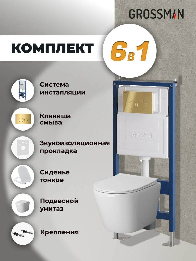 Комплект инсталляции GROSSMAN 900.K31.01.000 с клавишей смыва 700.K31.05.30M.30M золото и унитазом GROSSMAN GR-4478SQ арт.97.4478SQ.05.30M