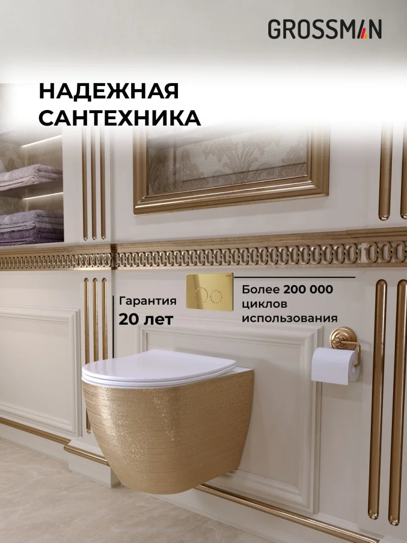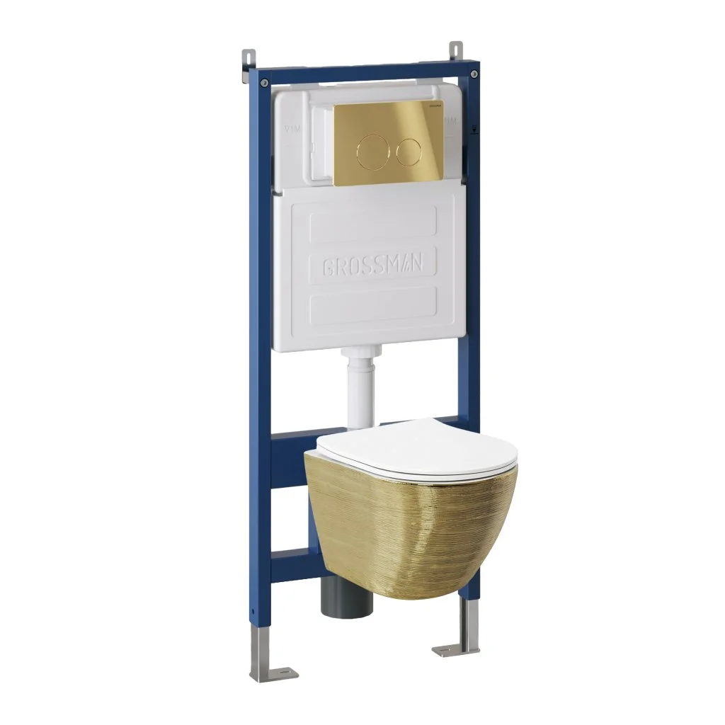 Комплект инсталляции GROSSMAN 900.K31.01.000 с клавишей смыва 700.K31.05.30M.30M золото и унитазом GROSSMAN GR-4455GWS арт.97.4455GWS.05.30M