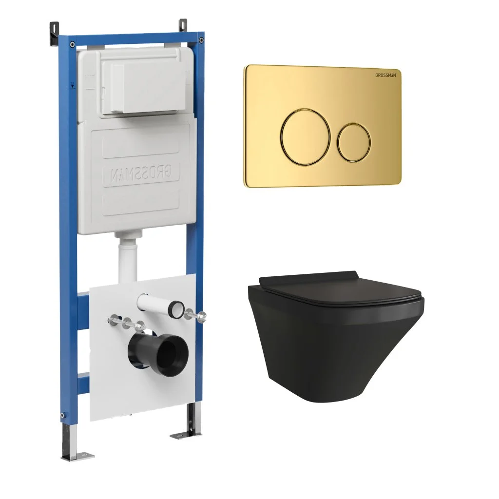 Комплект инсталляции GROSSMAN 900.K31.01.000 с клавишей смыва 700.K31.05.30M.30M золото и унитазом GROSSMAN GR-4440BMS арт.97.4440BMS.05.30M