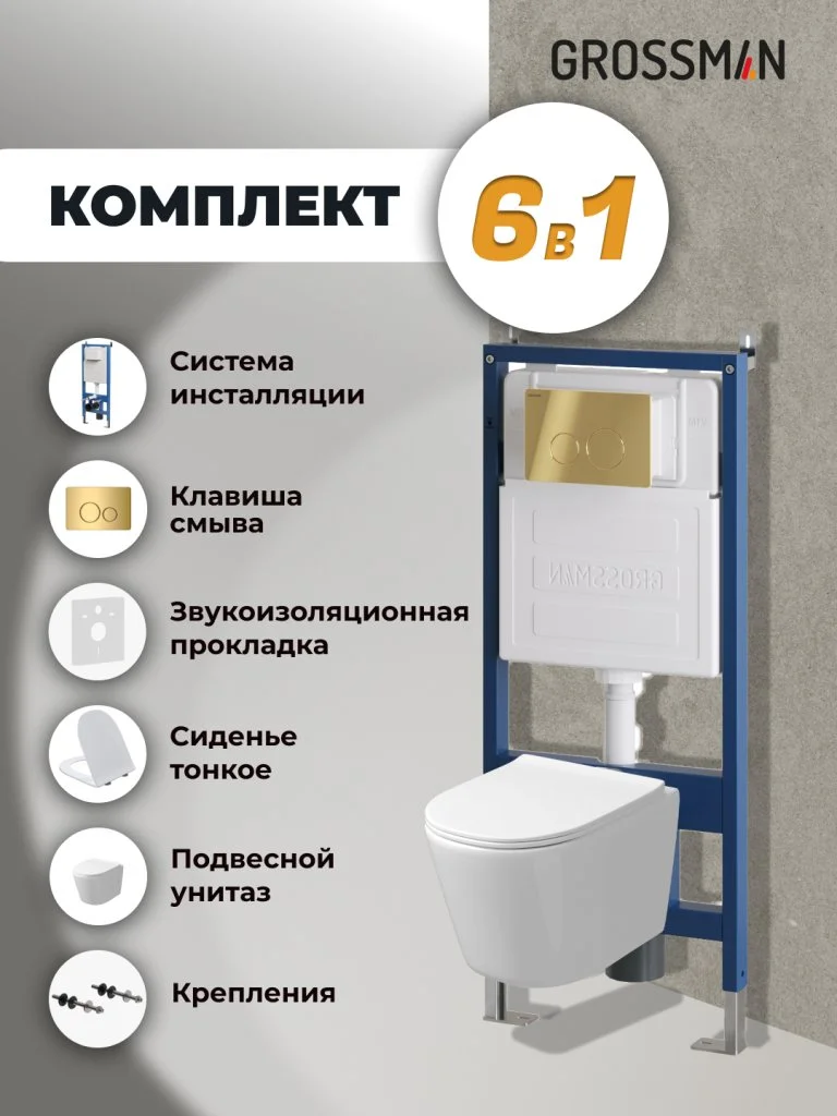 Комплект инсталляции GROSSMAN 900.K31.01.000 с клавишей смыва 700.K31.05.30M.30M золото и унитазом GROSSMAN GR-4477SQ арт.97.4477SQ.05.30M