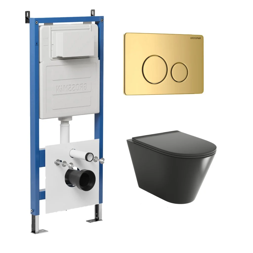 Комплект инсталляции GROSSMAN 900.K31.01.000 с клавишей смыва 700.K31.05.30M.30M золото и унитазом GROSSMAN GR-4477BMS арт.97.4477BMS.05.30M