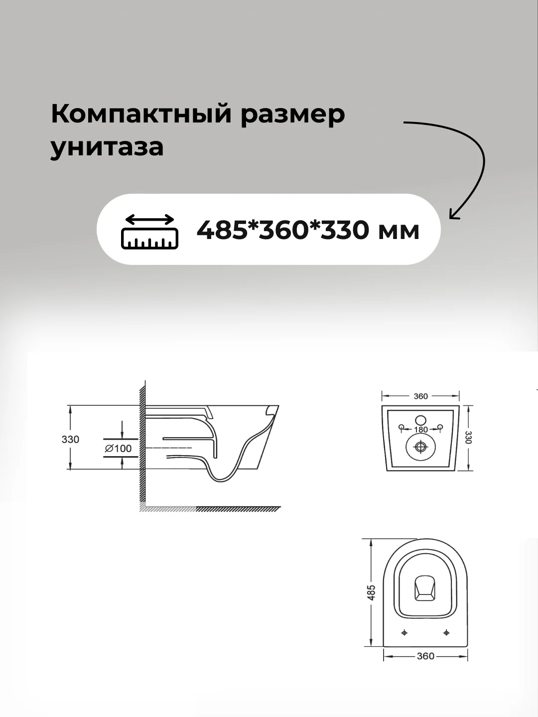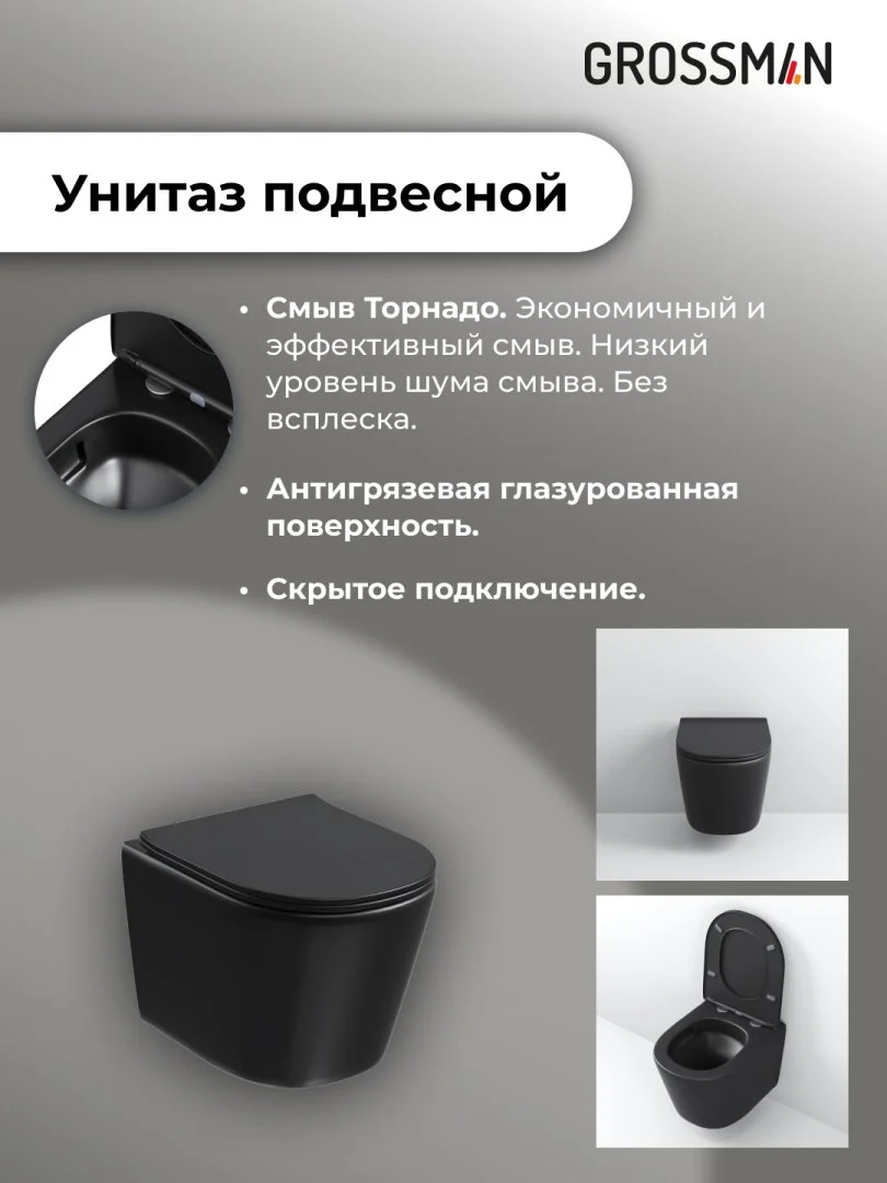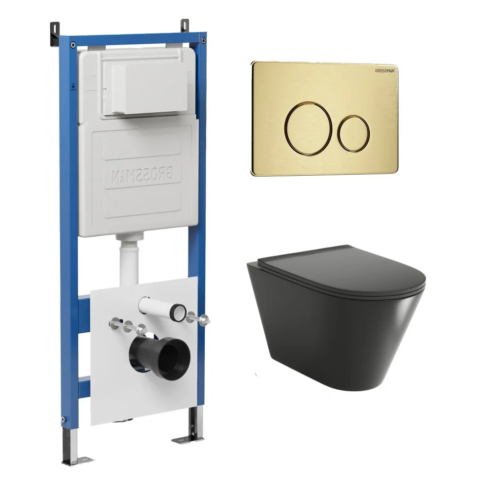 Комплект инсталляции GROSSMAN 900.K31.01.000 с клавишей смыва 700.K31.05.32M.32M золото сатиновое и унитазом GROSSMAN GR-4477BMSQ арт.97.4477BMSQ.05.32M
