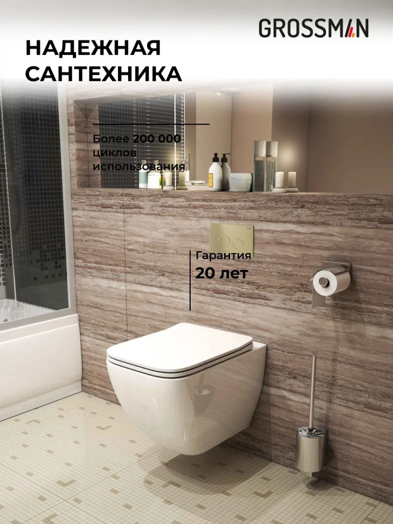 Комплект инсталляции GROSSMAN 900.K31.01.000 с клавишей смыва 700.K31.05.32M.32M золото сатиновое и унитазом GROSSMAN GR-4447S арт.97.4447S.05.32M