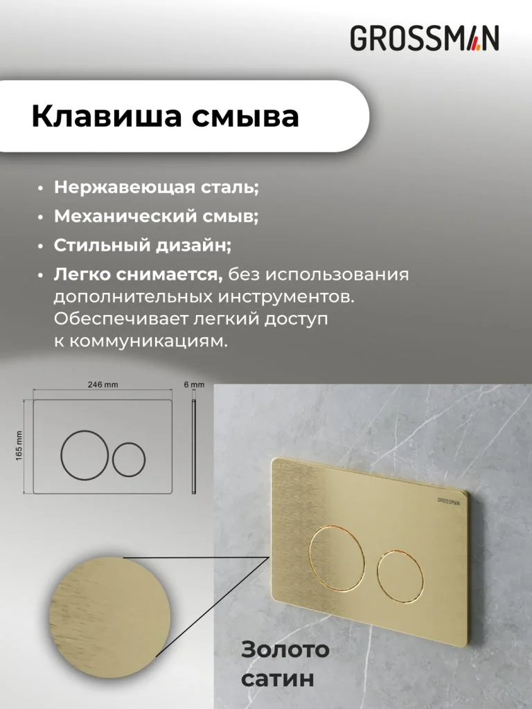 Комплект инсталляции GROSSMAN 900.K31.01.000 с клавишей смыва 700.K31.05.32M.32M золото сатиновое и унитазом GROSSMAN GR-4414S арт.97.4414S.05.32M