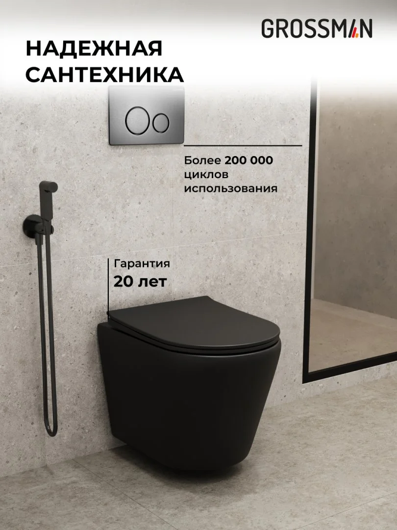 Комплект инсталляции GROSSMAN 900.K31.01.000 с клавишей смыва 700.K31.05.42M.42M графит сатиновый и унитазом GROSSMAN GR-4478BMS арт.97.4478BMS.05.42M