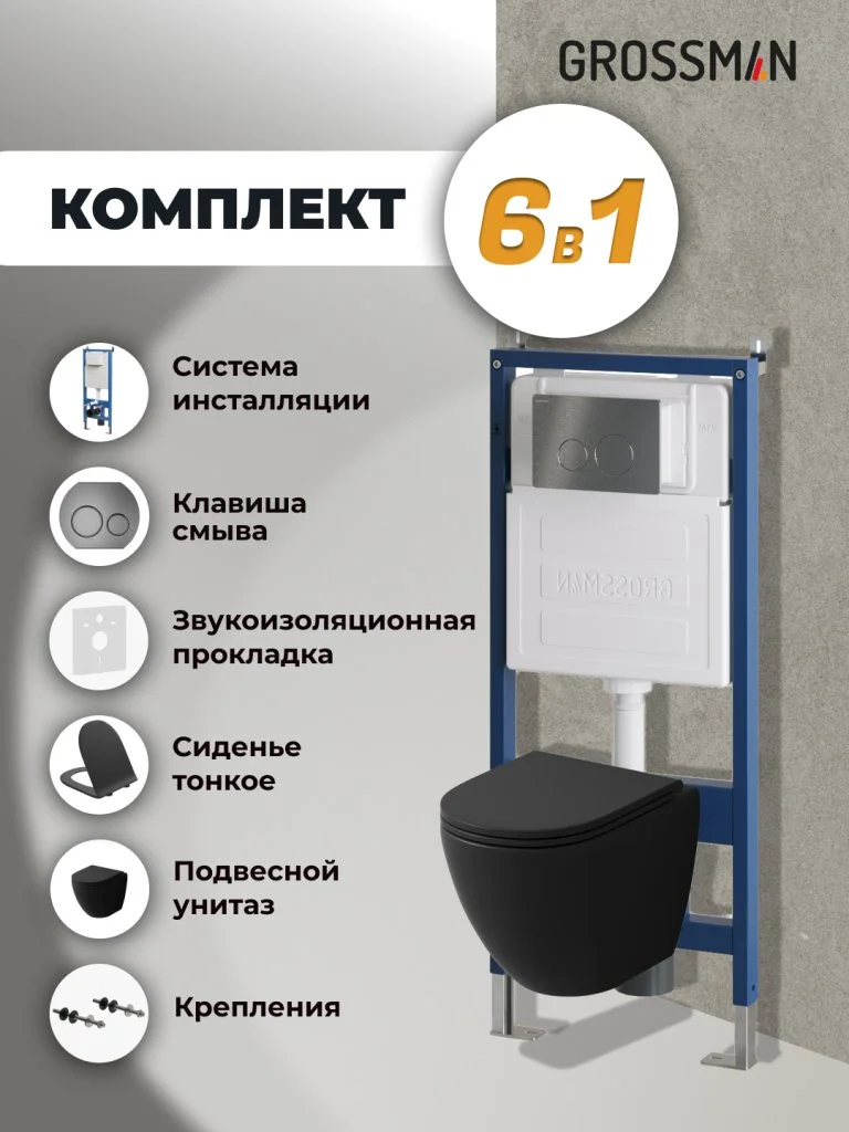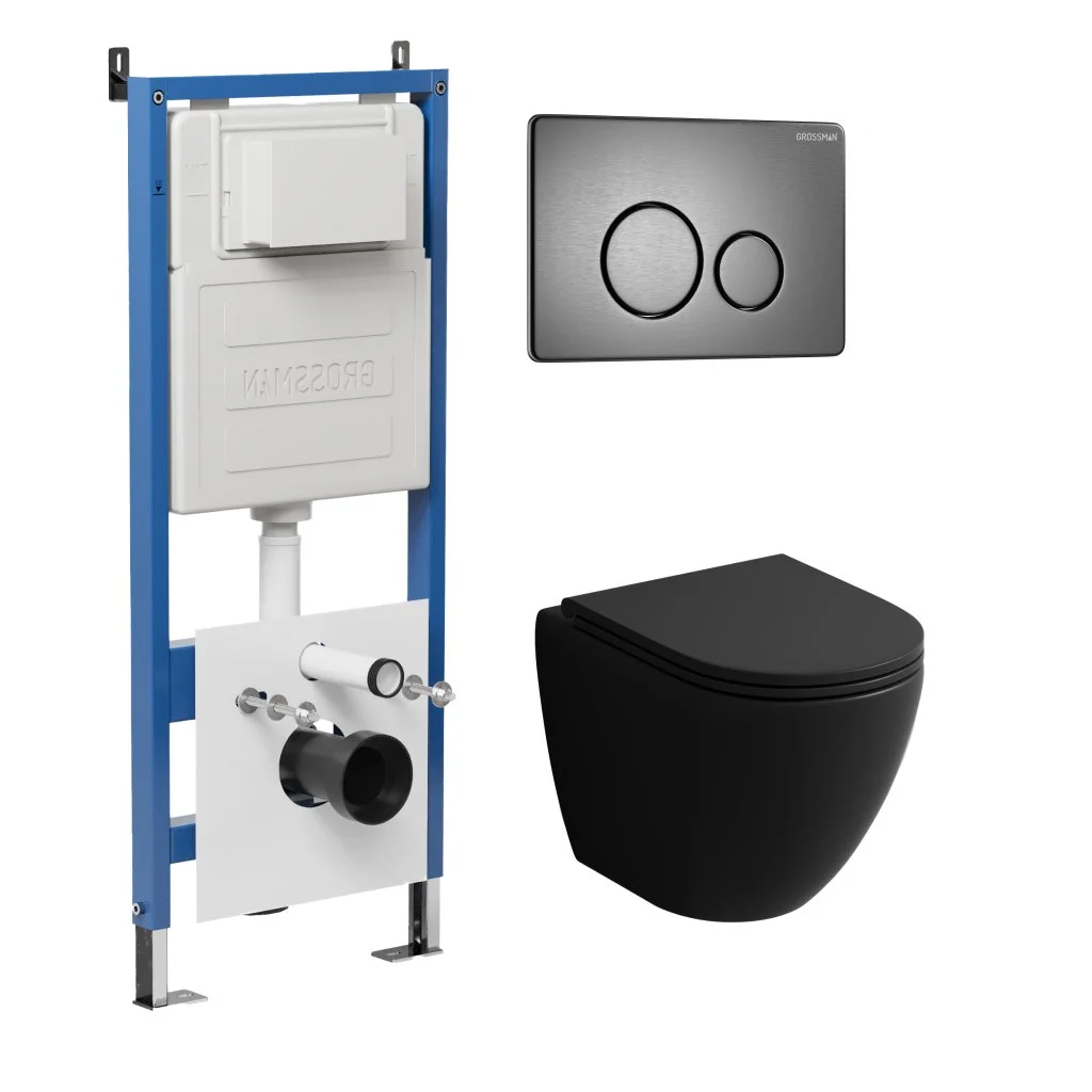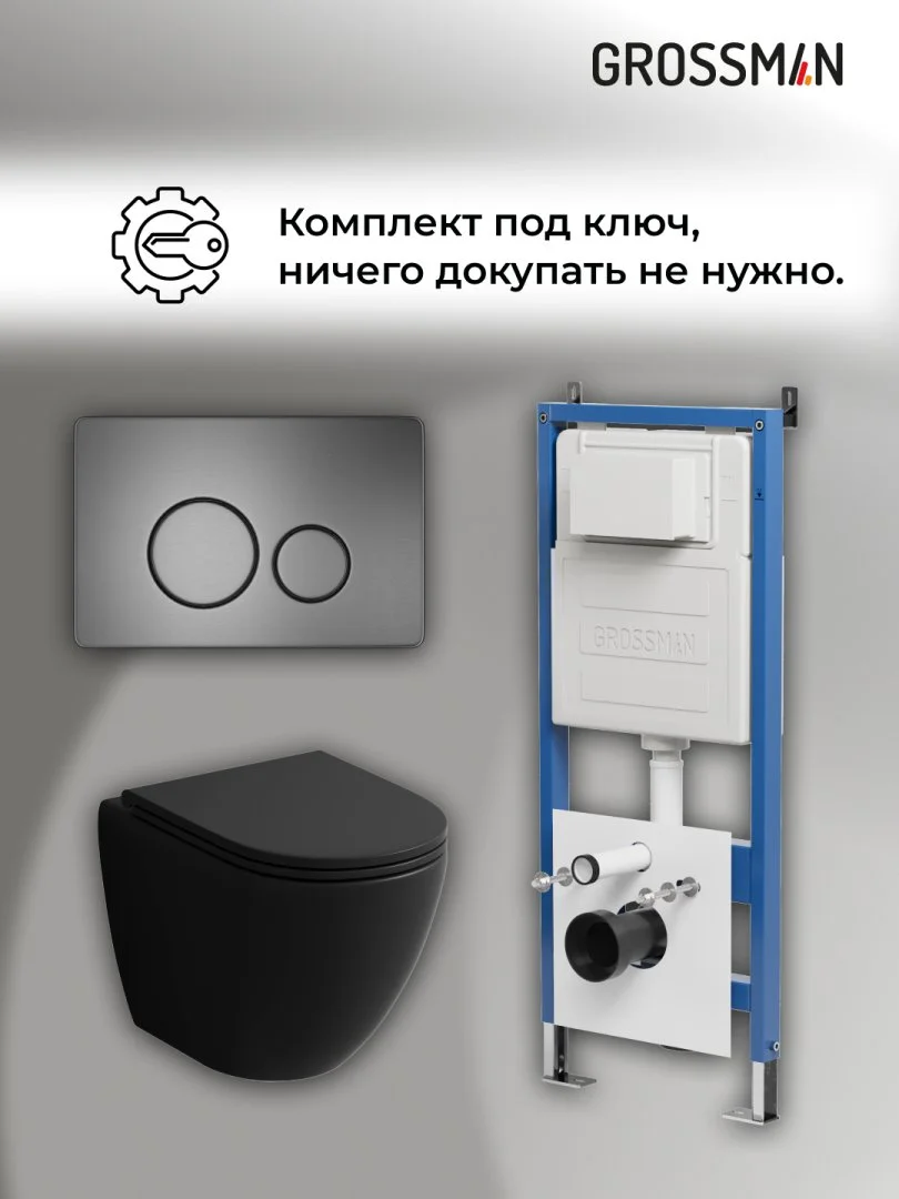 Комплект инсталляции GROSSMAN 900.K31.01.000 с клавишей смыва 700.K31.05.42M.42M графит сатиновый и унитазом GROSSMAN GR-4455BMS арт.97.4455BMS.05.42M