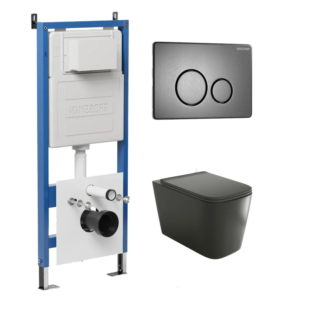 Комплект инсталляции GROSSMAN 900.K31.01.000 с клавишей смыва 700.K31.05.42M.42M графит сатиновый и унитазом GROSSMAN GR-4441BMS арт.97.4441BMS.05.42M