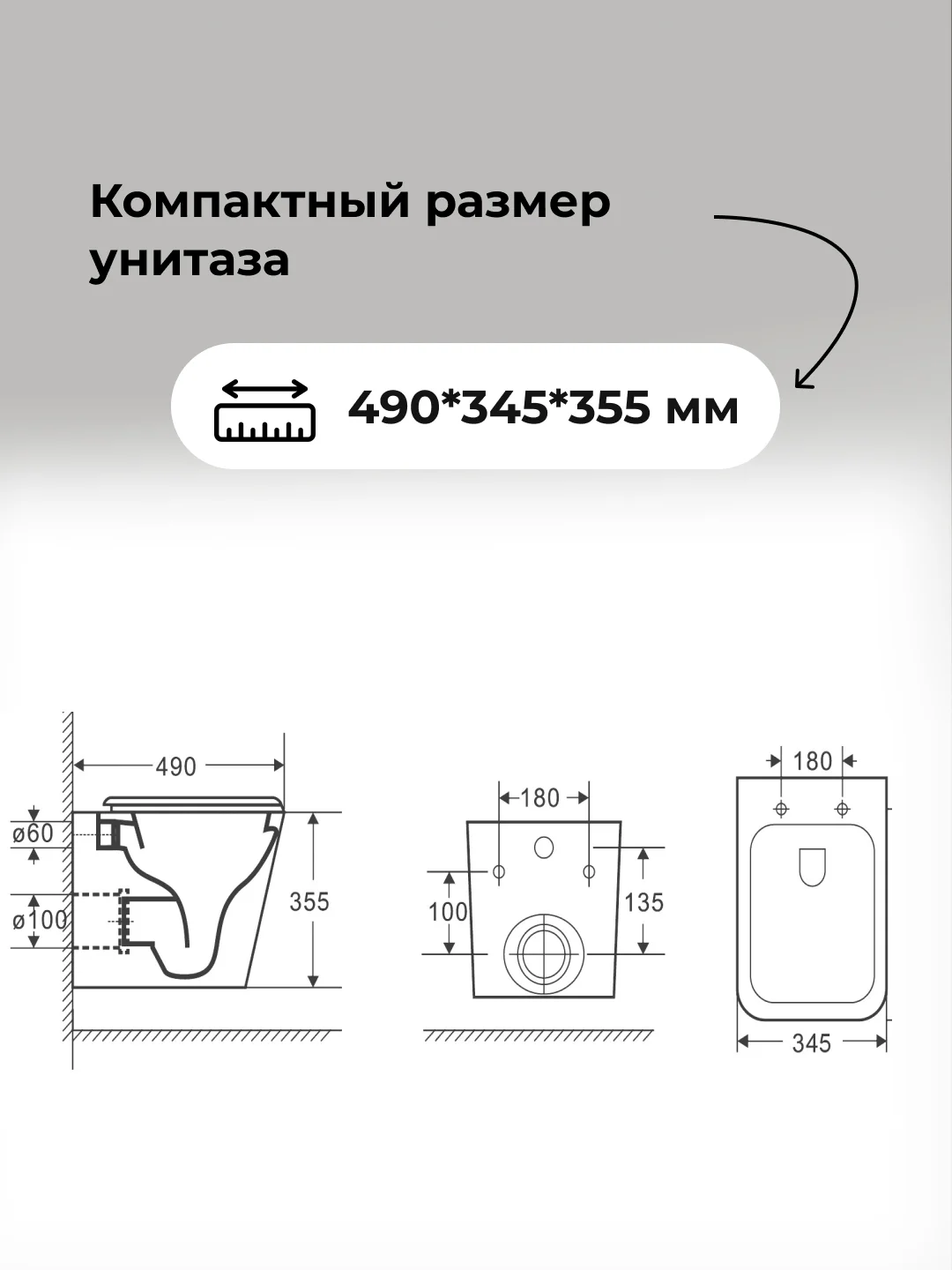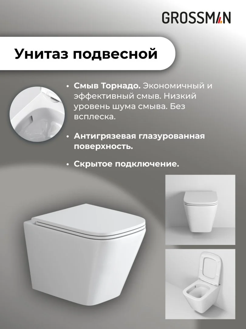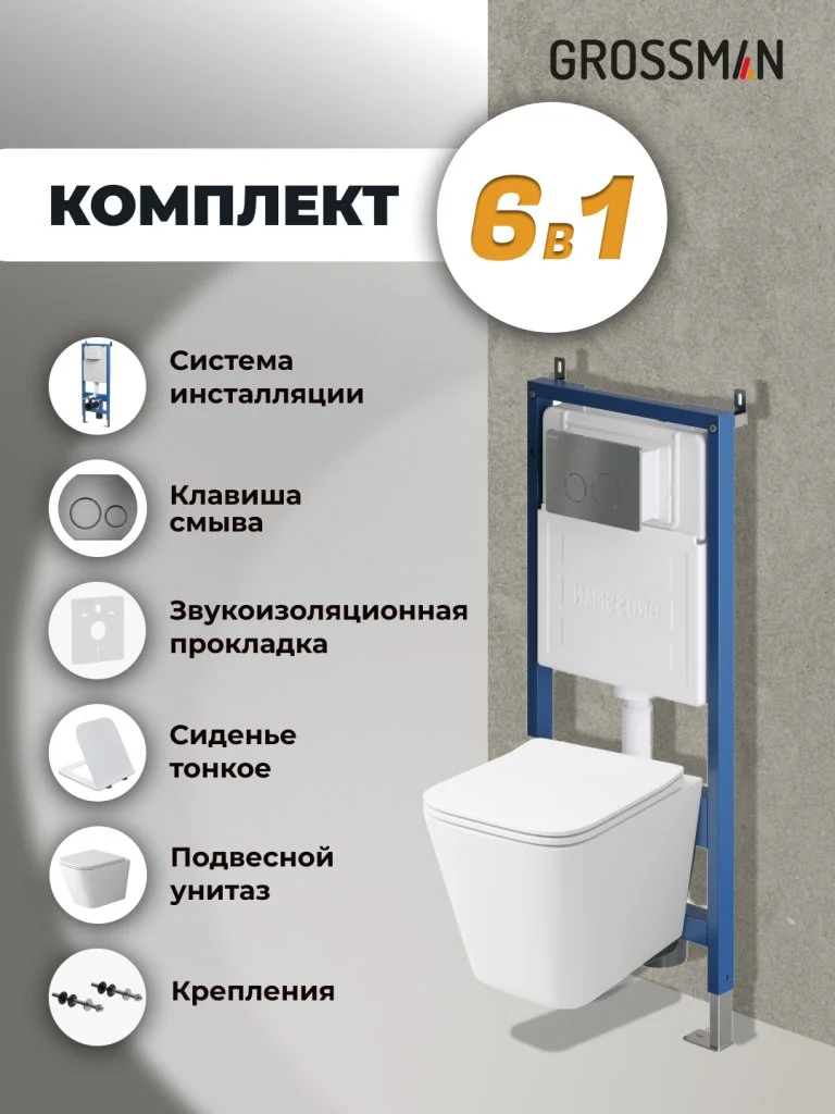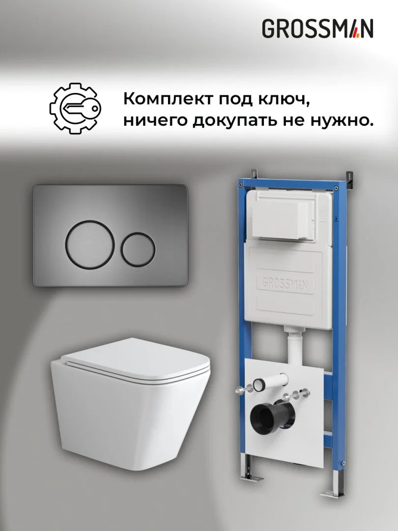 Комплект инсталляции GROSSMAN 900.K31.01.000 с клавишей смыва 700.K31.05.42M.42M графит сатиновый и унитазом GROSSMAN GR-4479SQ арт.97.4479SQ.05.42M