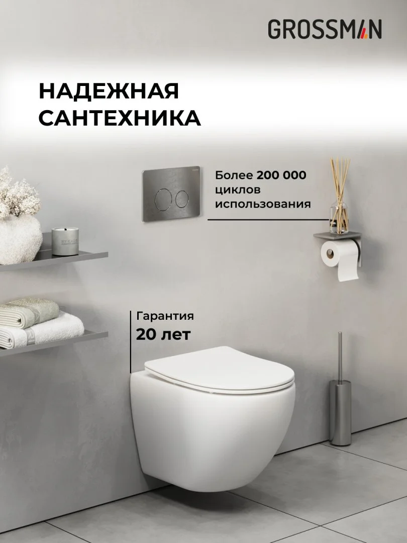 Комплект инсталляции GROSSMAN 900.K31.01.000 с клавишей смыва 700.K31.05.42M.42M графит сатиновый и унитазом GROSSMAN GR-4455SQ арт.97.4455SQ.05.42M