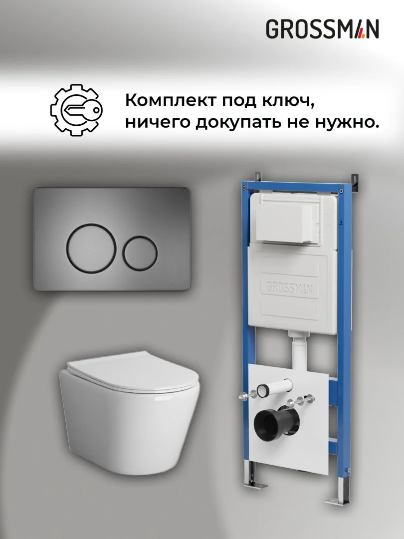 Комплект инсталляции GROSSMAN 900.K31.01.000 с клавишей смыва 700.K31.05.42M.42M графит сатиновый и унитазом GROSSMAN GR-4478S арт.97.4478S.05.42M