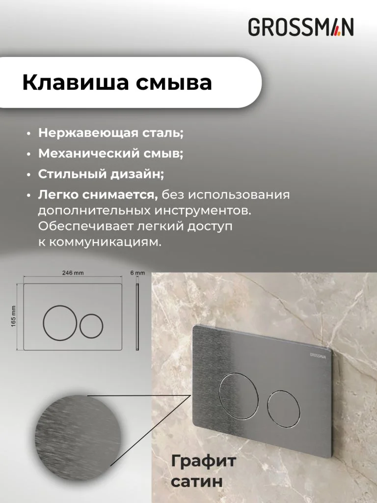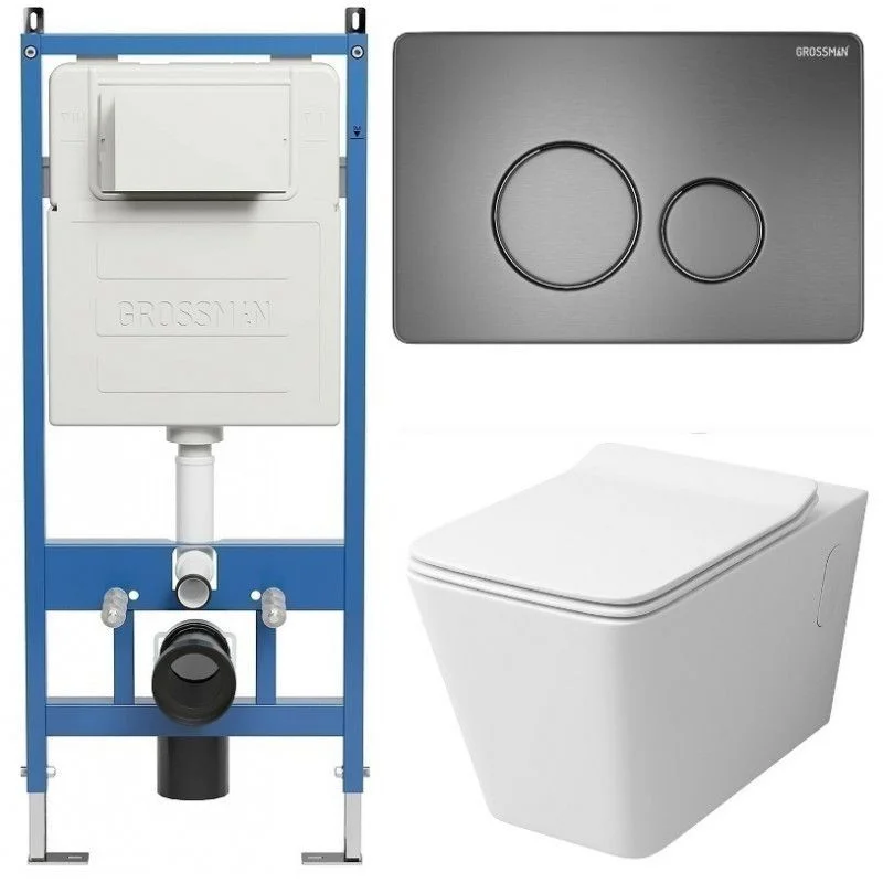Комплект инсталляции GROSSMAN 900.K31.01.000 с клавишей смыва 700.K31.05.42M.42M графит сатиновый и унитазом GROSSMAN GR-4414S арт.97.4414S.05.42M