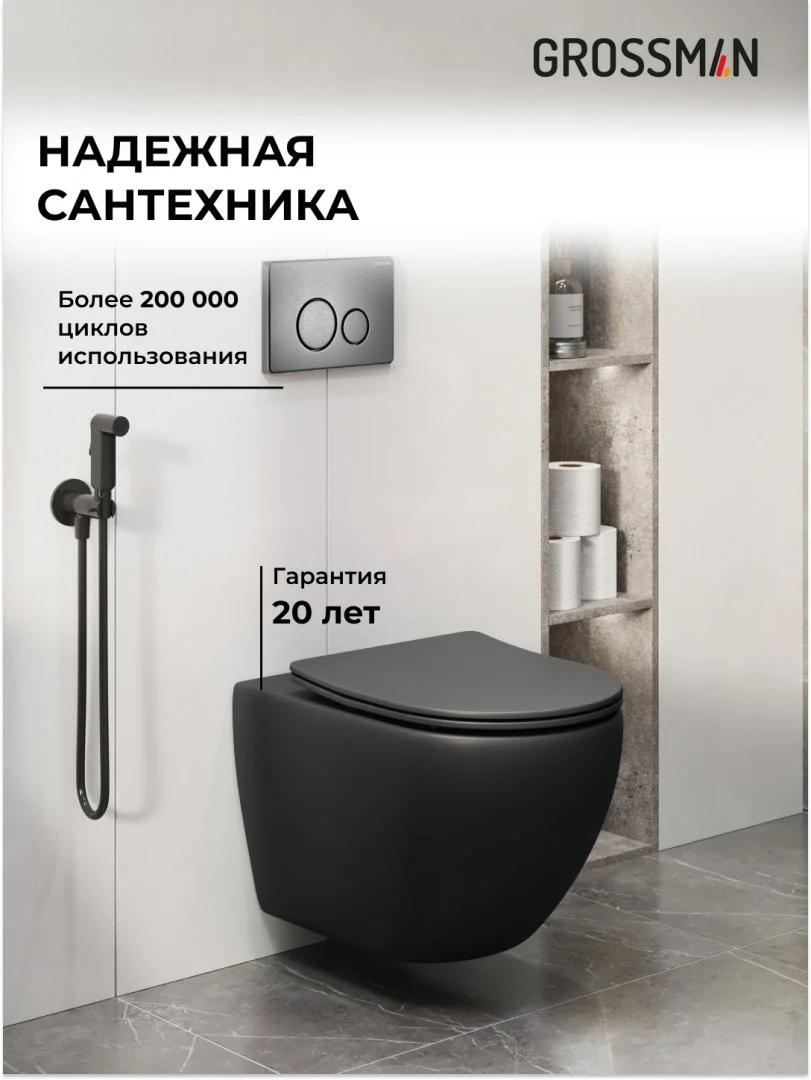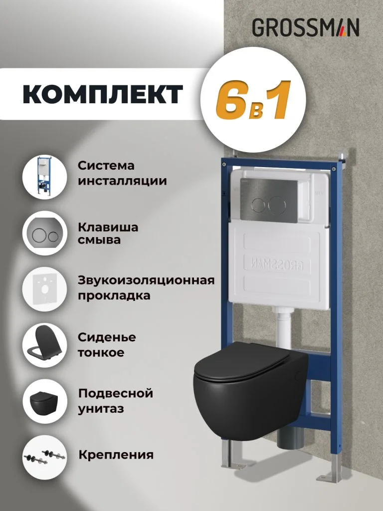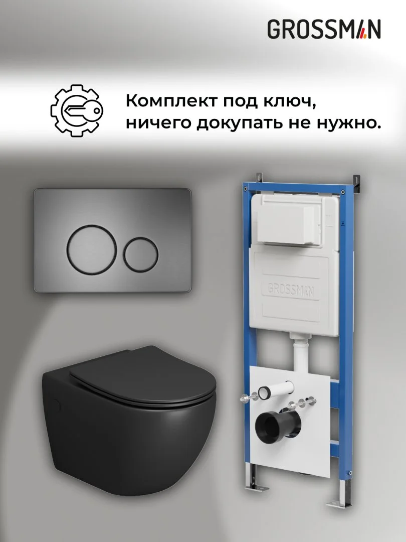 Комплект инсталляции GROSSMAN 900.K31.01.000 с клавишей смыва 700.K31.05.42M.42M графит сатиновый и унитазом GROSSMAN GR-4411BMS арт.97.4411BMS.05.42M