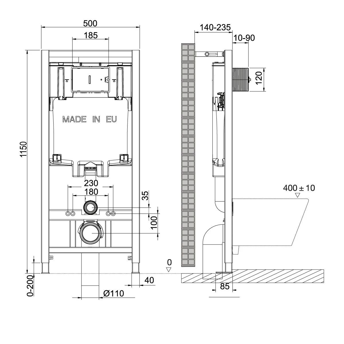 Система инсталляции на монтажной раме, Кнопка смыва, Унитаз подвесной безободковый, Инструкции по монтажу