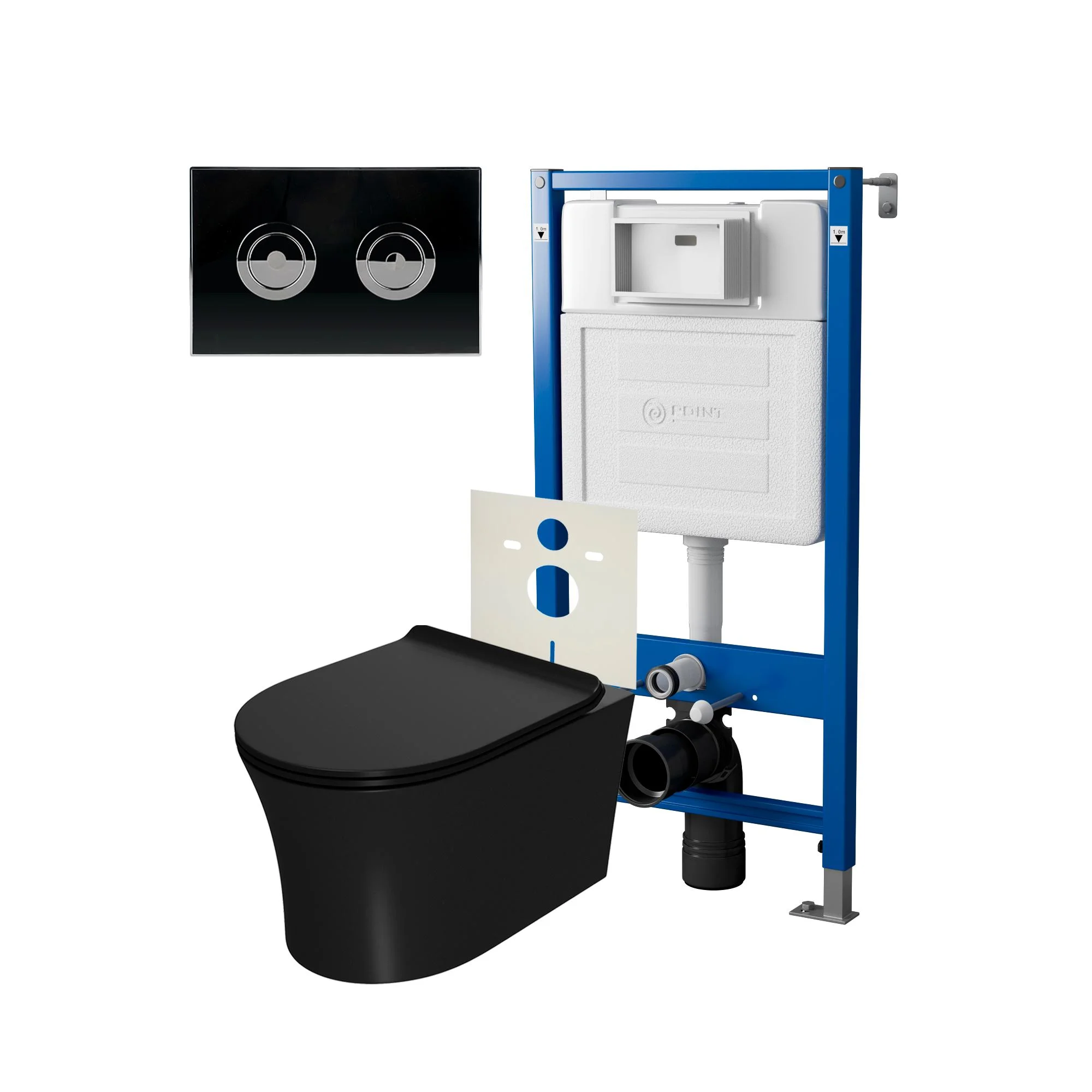 Комплект инсталляции Point Элемент П PN45121 с клавишей смыва Венера, черный/хром, PN44071BC и унитазом Вега чёрн мат, PN41711BM