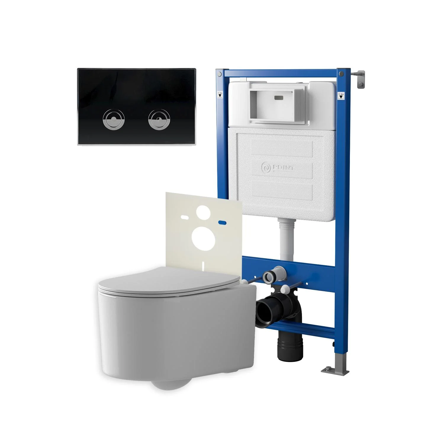 Комплект инсталляции Point Элемент П PN45121 с клавишей смыва Венера, черный/хром, PN44071BC и унитазом Веста белый, с сиденьем микролифт PN41701 арт. PN48184BC