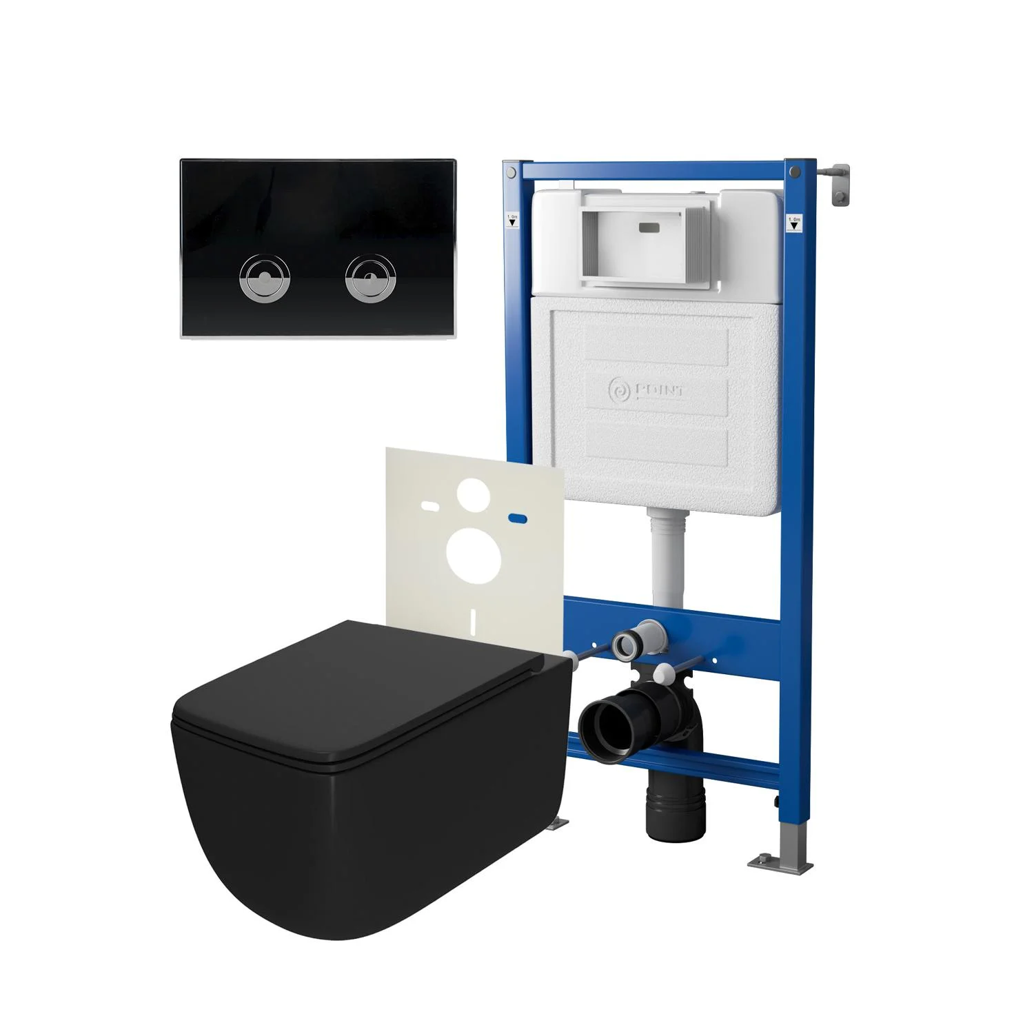 Комплект инсталляции Point Элемент П PN45121 с клавишей смыва Венера, черный/хром, PN44071BC и унитазом Меркурий с сиденьем микролифт чёрн мат. PN41831BM арт. 56041670