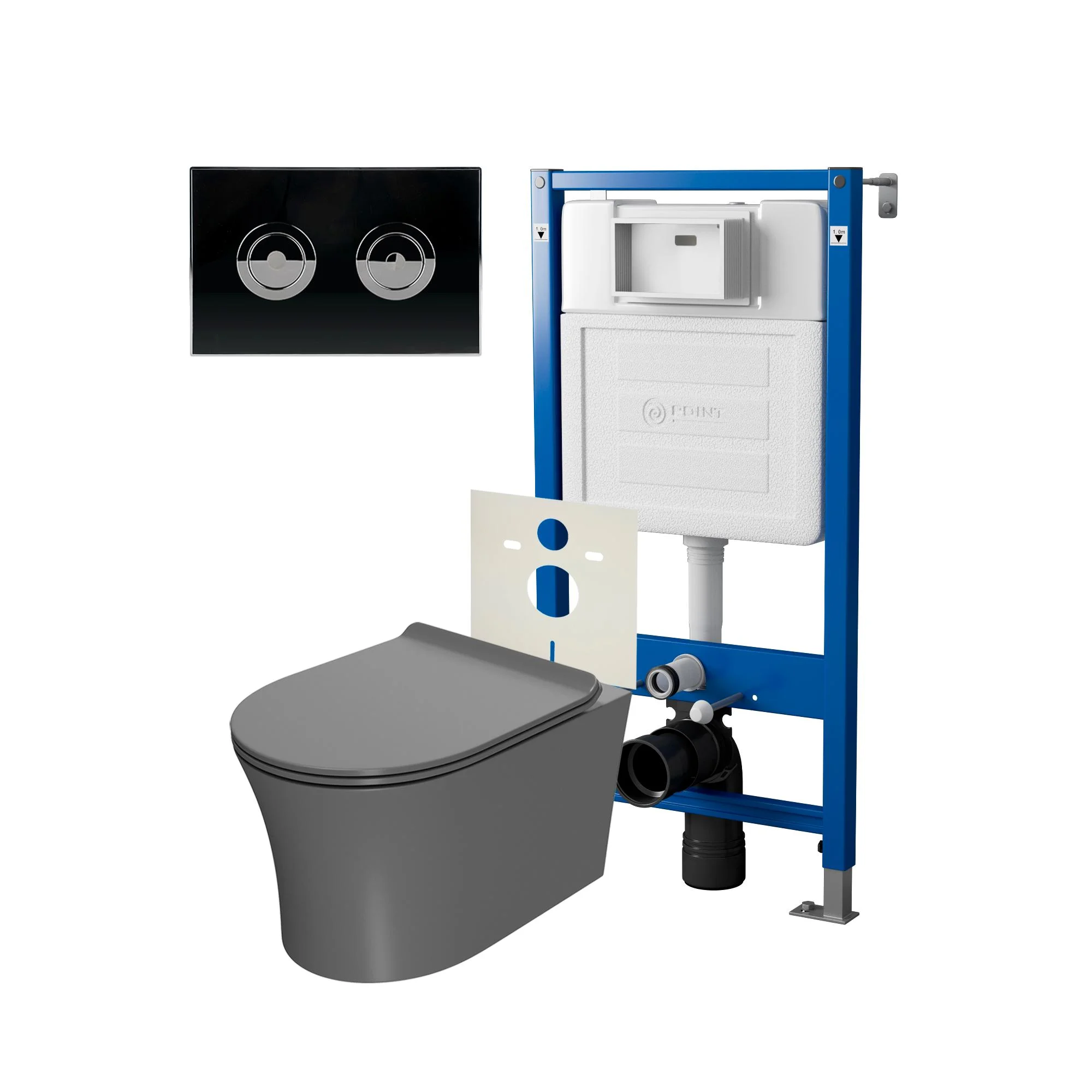 Комплект инсталляции Point Элемент П PN45121 с клавишей смыва Венера, черный/хром, PN44071BC и унитазом Вега сер мат, PN41711GM арт. PN48174BC