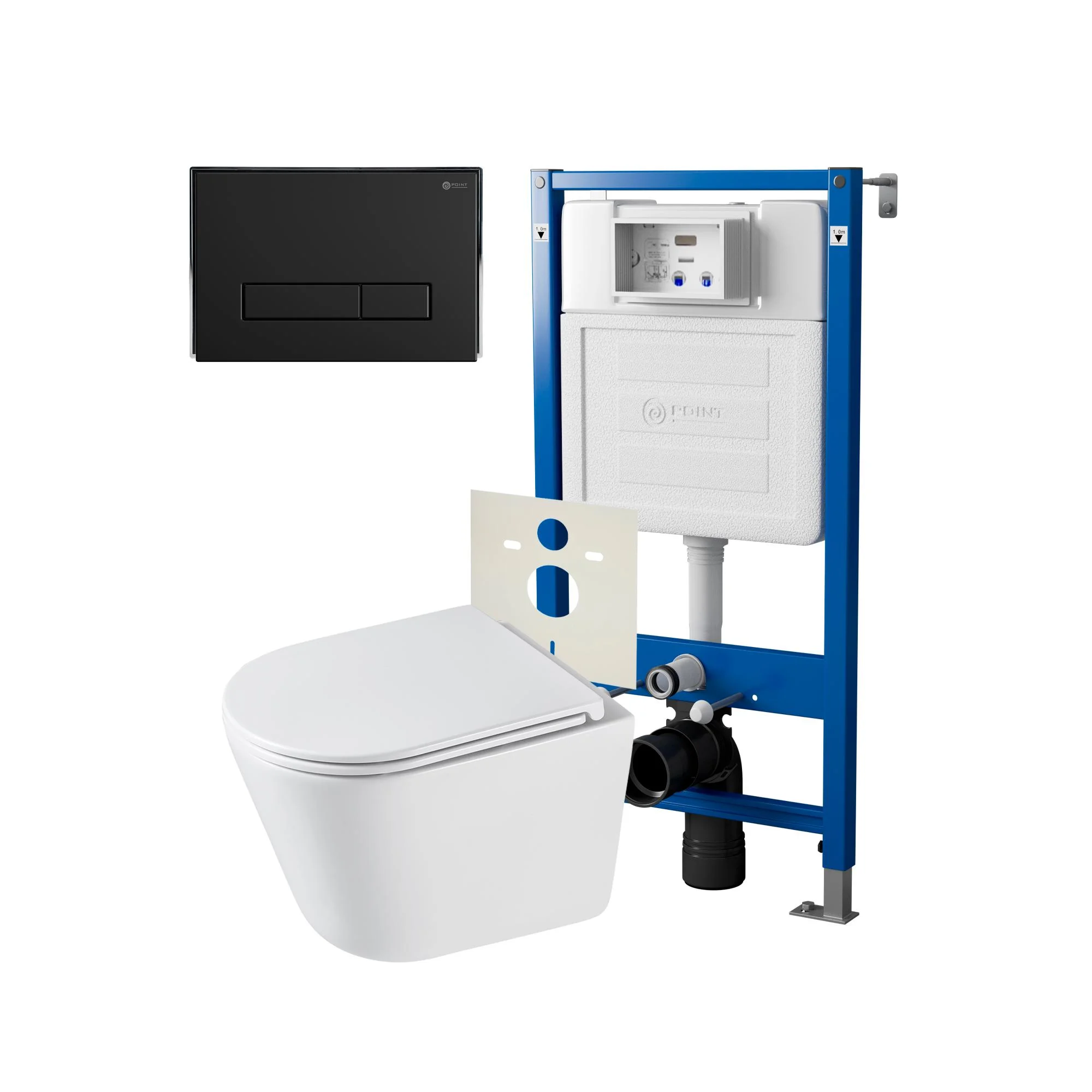 Комплект инсталляции Point Элемент PN45120 с клавишей смыва Меркурий, черная матовая, PN44831BM и унитазом Венера белый, с сиденьем микролифт PN41071