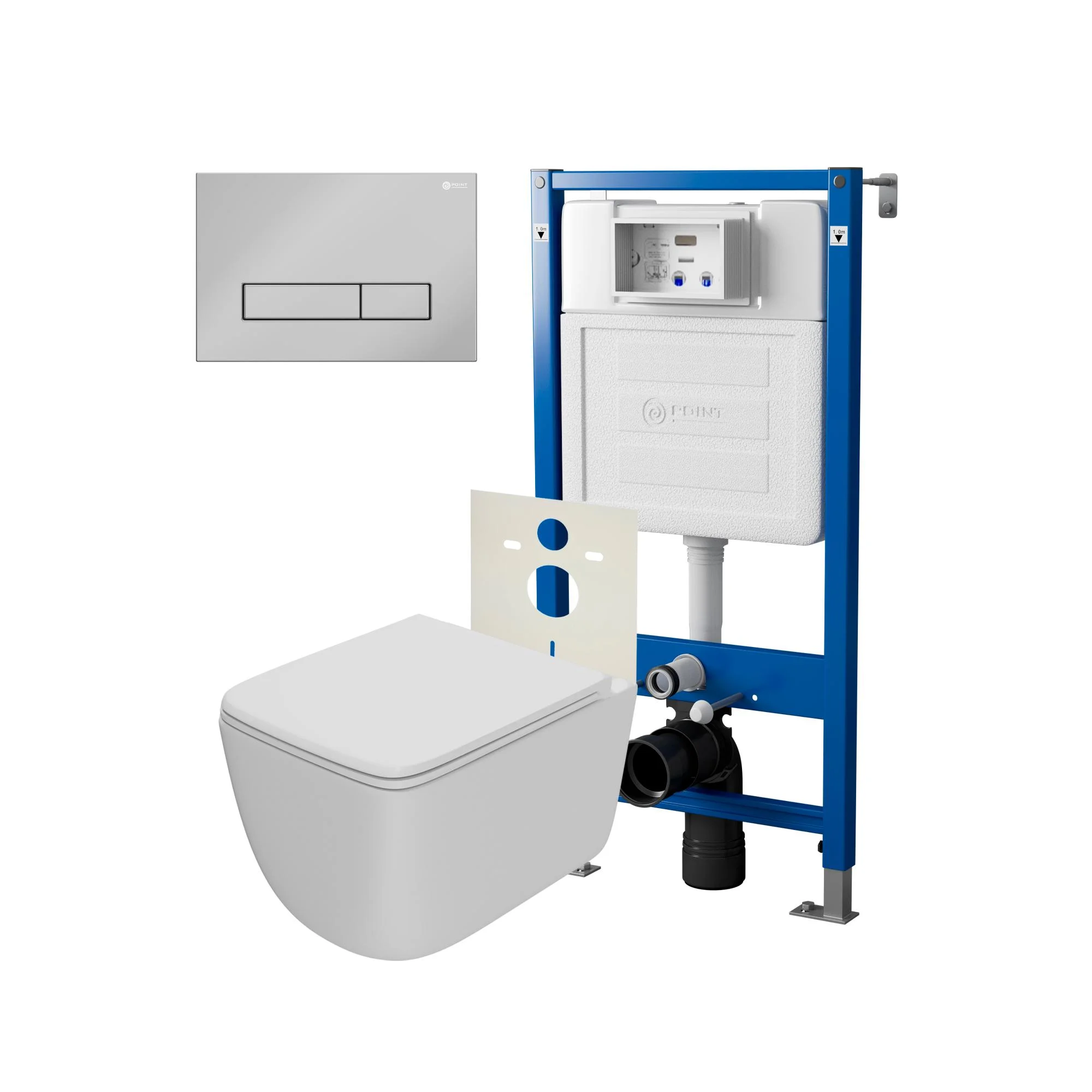 Комплект инсталляции Point Элемент PN45120 с клавишей смыва Меркурий, хром, PN44831C и унитазом Меркурий с сиденьем микролифт белый матовый PN41831WM