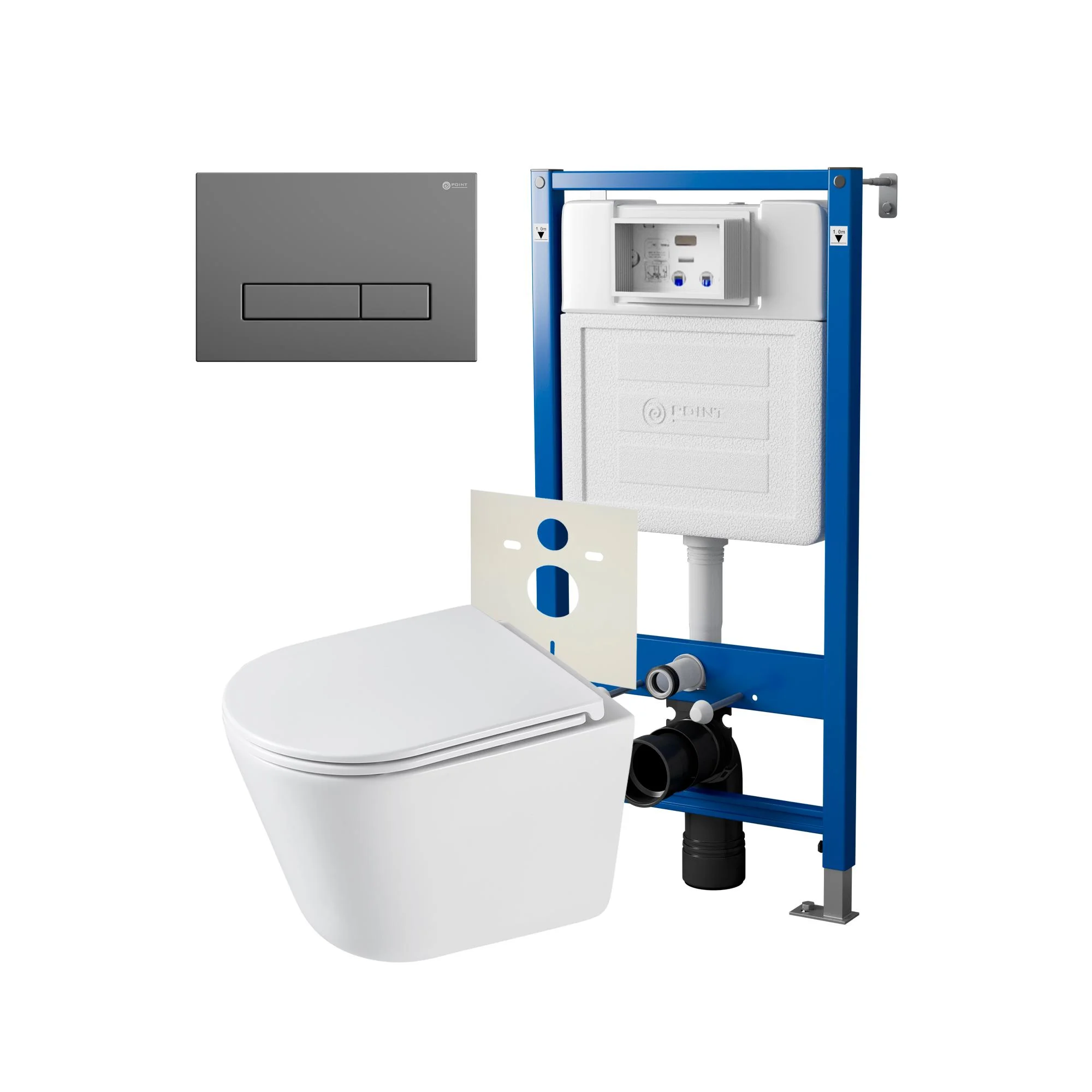 Комплект инсталляции Point Элемент PN45120 с клавишей смыва Меркурий, цвет графит, PN44831GM и унитазом Венера белый, с сиденьем микролифт PN41071