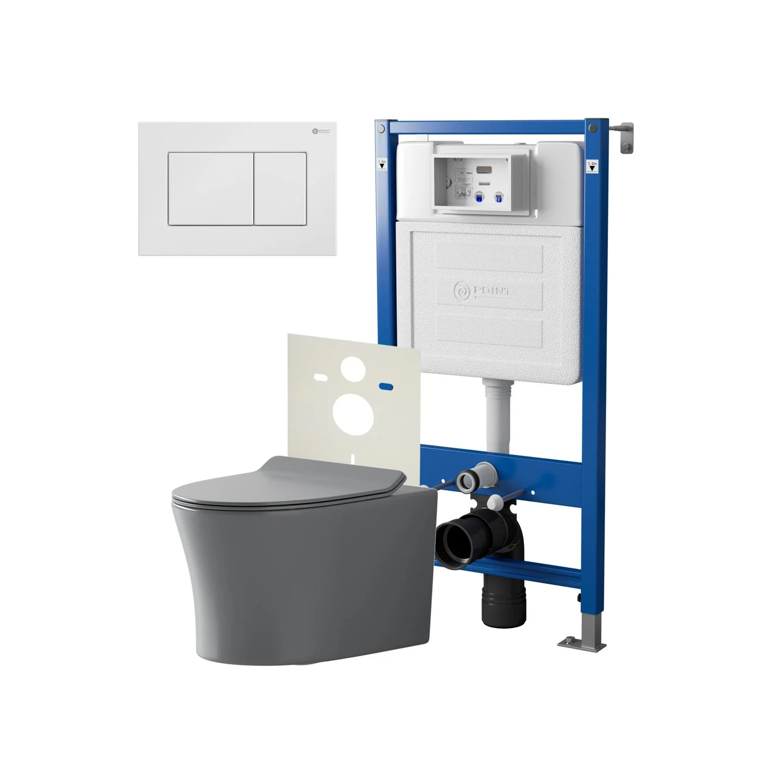 Комплект инсталляции Point Элемент PN45120 с клавишей смыва Ника, белая, PN44081W и унитазом Вега сер мат, PN41711GM