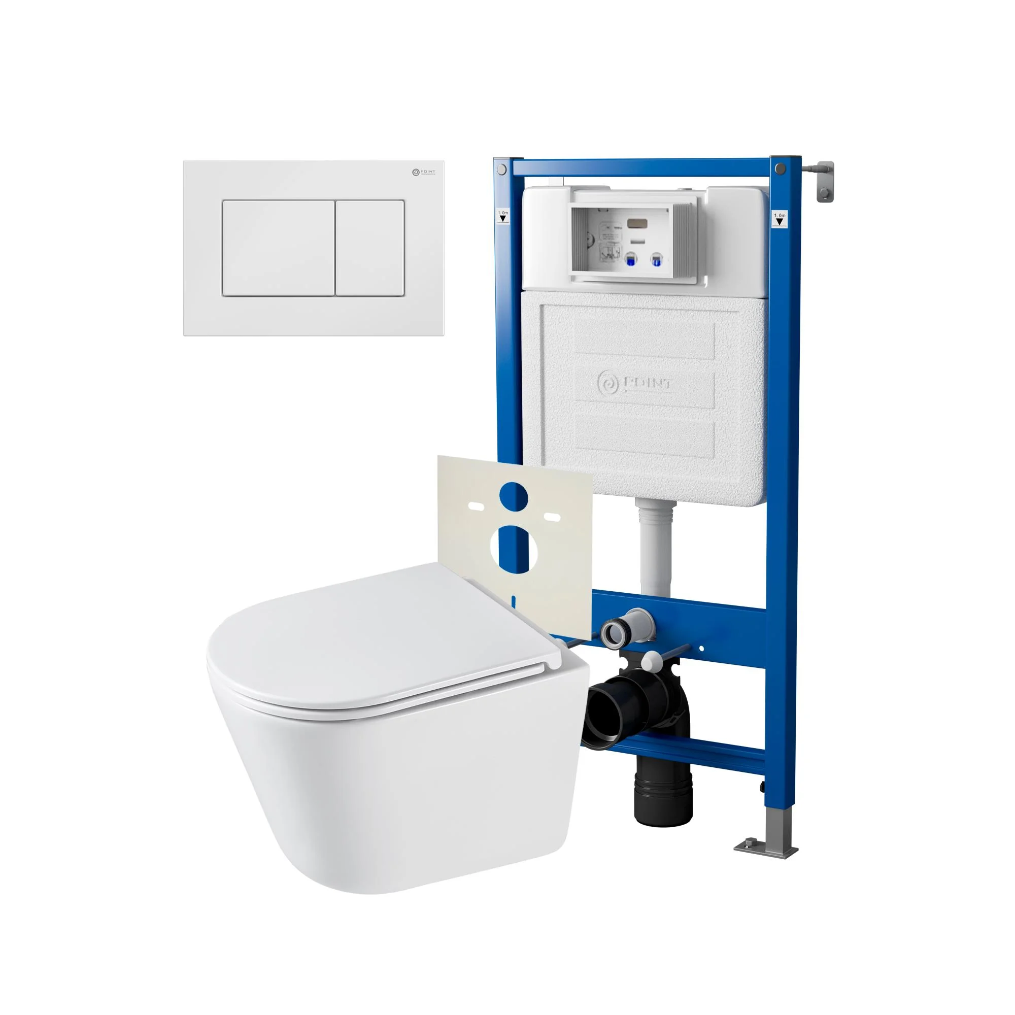 Комплект инсталляции Point Элемент PN45120 с клавишей смыва Ника, белая, PN44081W и унитазом Венера белый, с сиденьем микролифт PN41071