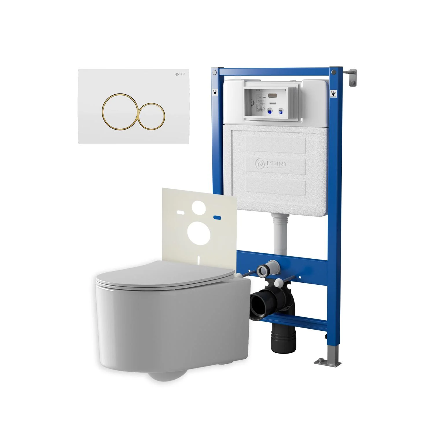 Комплект инсталляции Point Элемент PN45120 с клавишей смыва Виктория, белая/золото, PN44061WG и унитазом Веста белый, с сиденьем микролифт PN41701