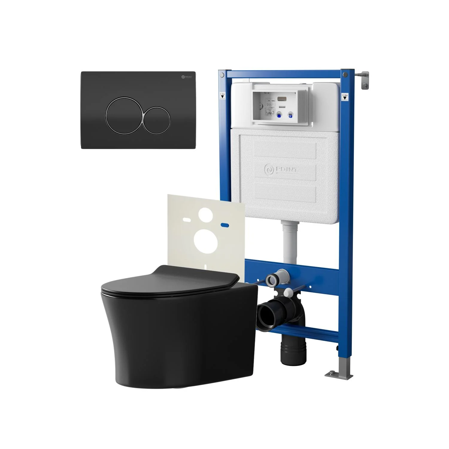 Комплект инсталляции Point Элемент PN45120 с клавишей смыва Виктория, черная/хром, PN44061BC и унитазом Вега чёрн мат, PN41711BM