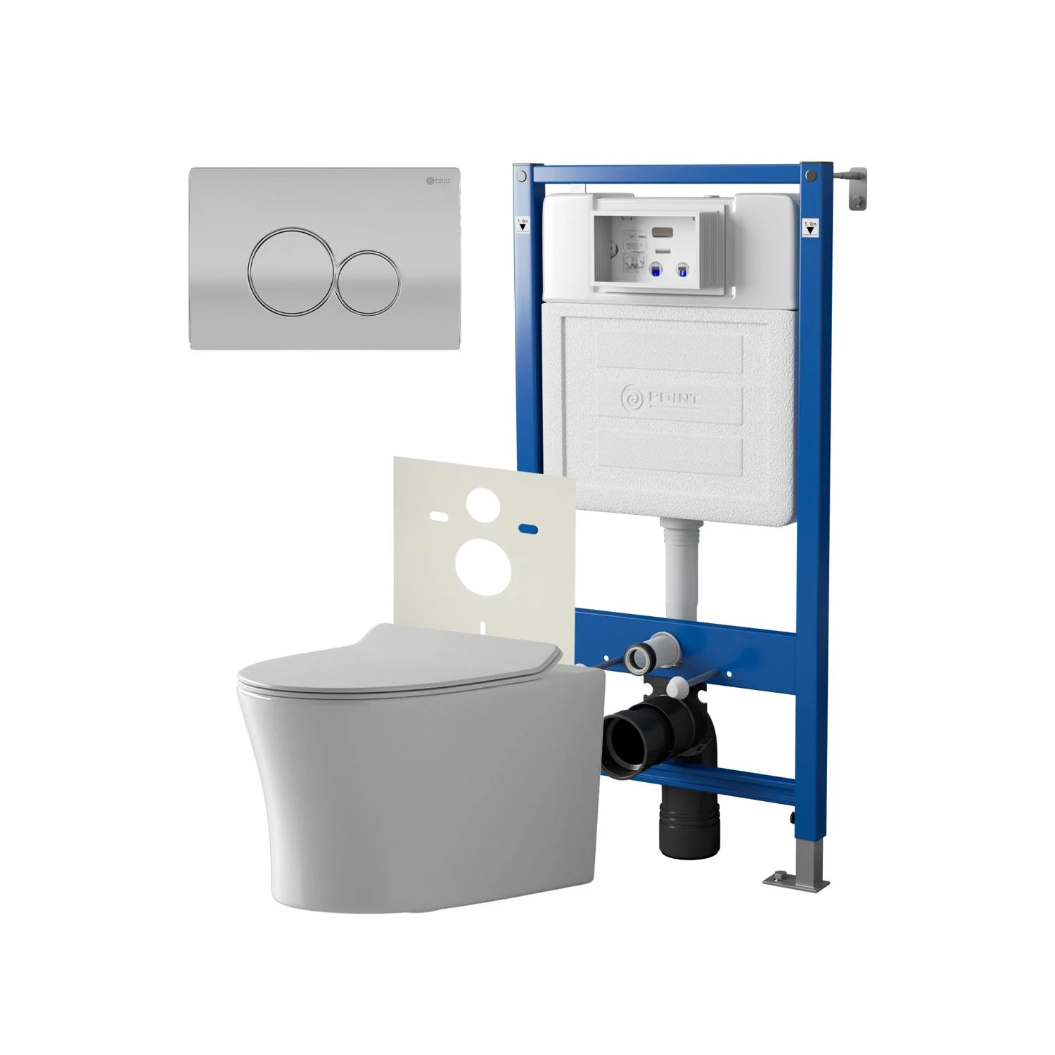 Комплект инсталляции Point Элемент PN45120 с клавишей смыва Виктория, цвет сатин/хром, PN44061SC и унитазом Вега с сиденьем микролифт PN41711