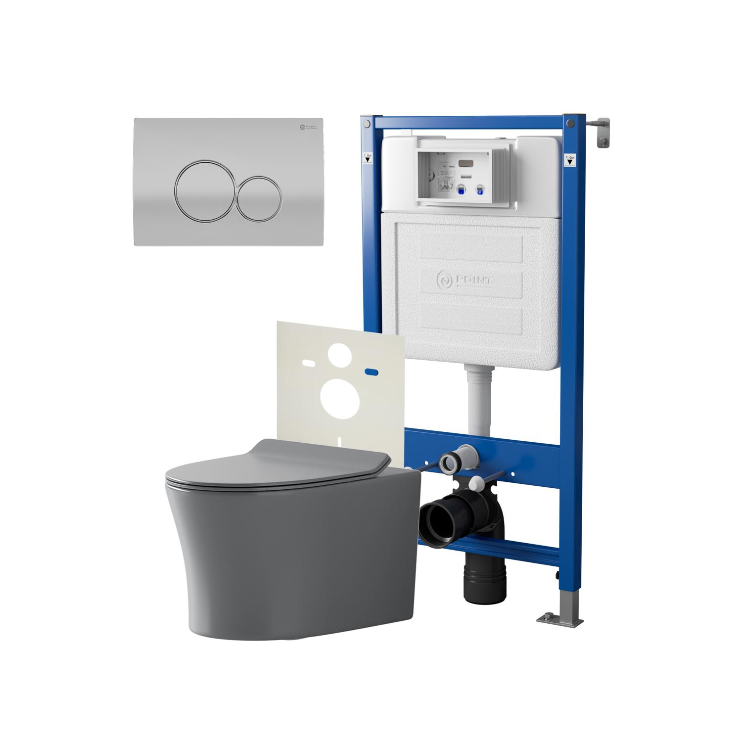 Комплект инсталляции Point Элемент PN45120 с клавишей смыва Виктория, цвет сатин/хром, PN44061SC и унитазом Вега сер мат, PN41711GM