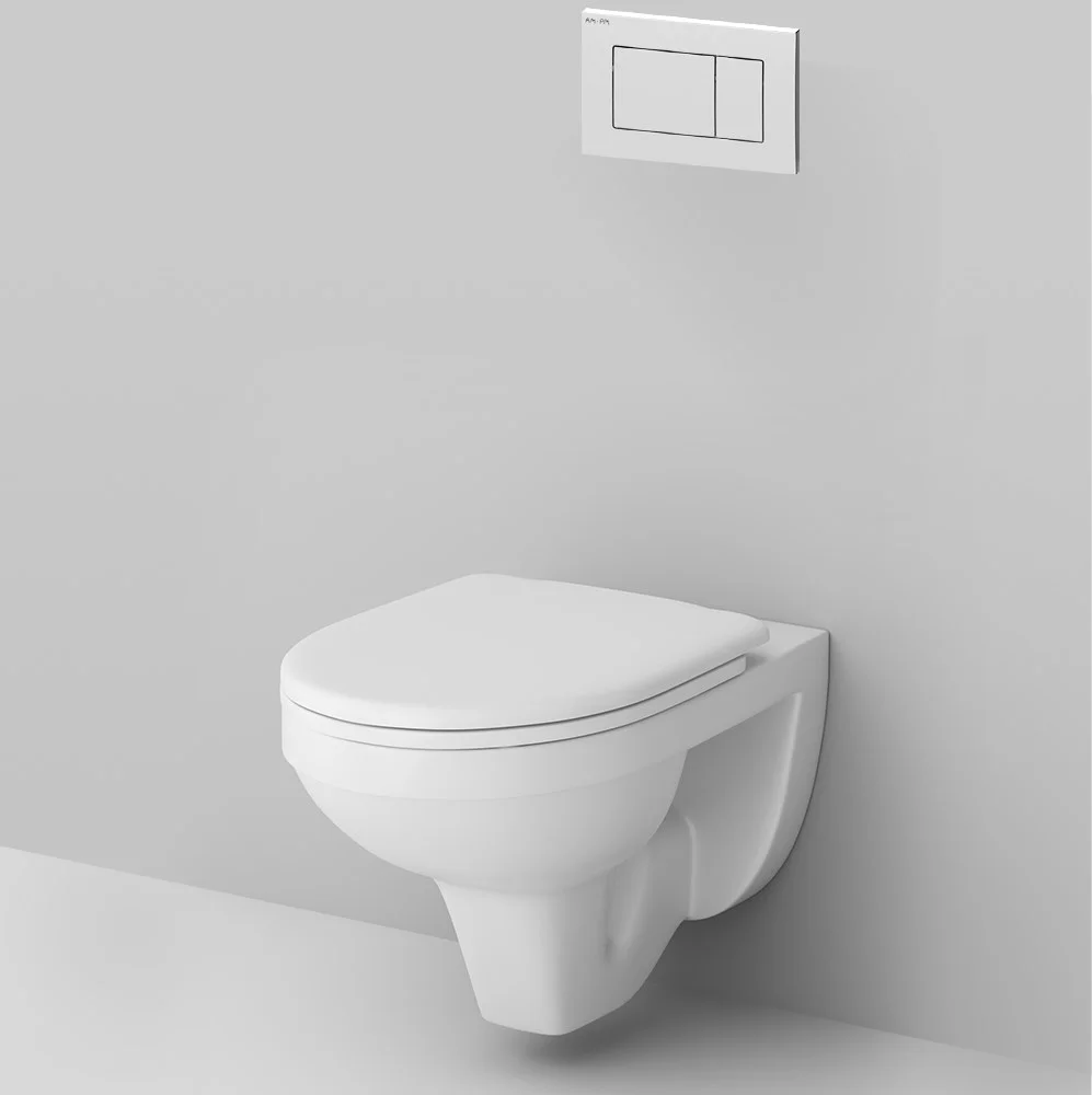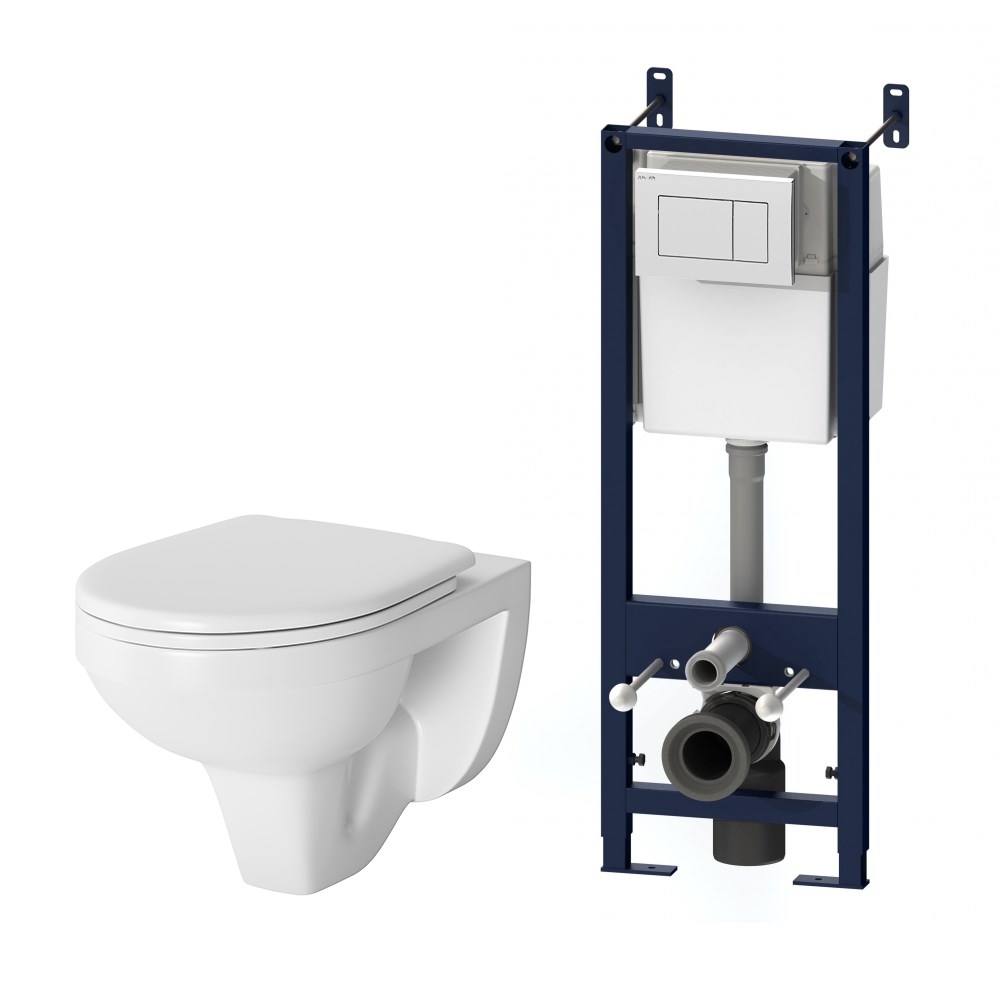 Полностью готовый к установке комплект: система инсталляции с клавишей подвесной унитаз с сиденьем.