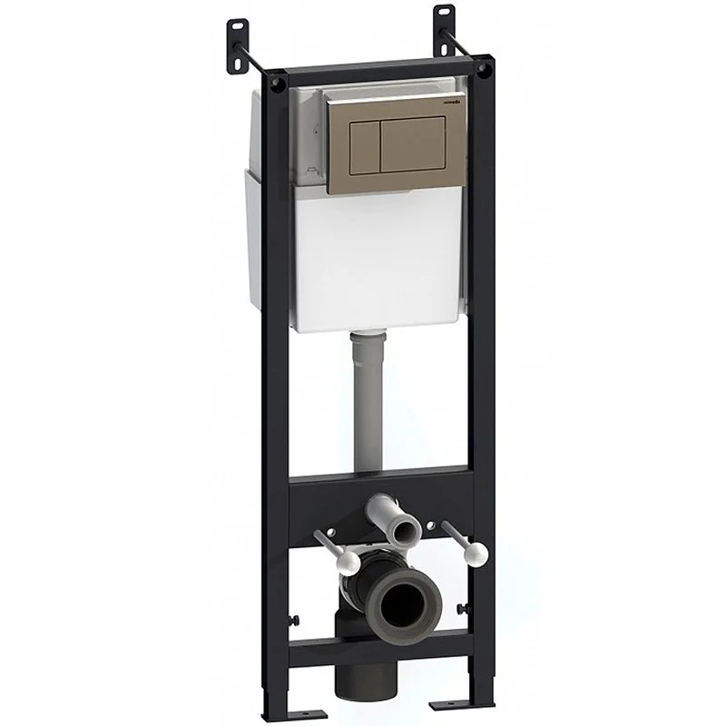 Укомплектован механической клавишей в цвете глянцевый хром. В комплекте все необходимые патрубки и крепления а также прокладка между унитазом и стеной - звукоизоляция.