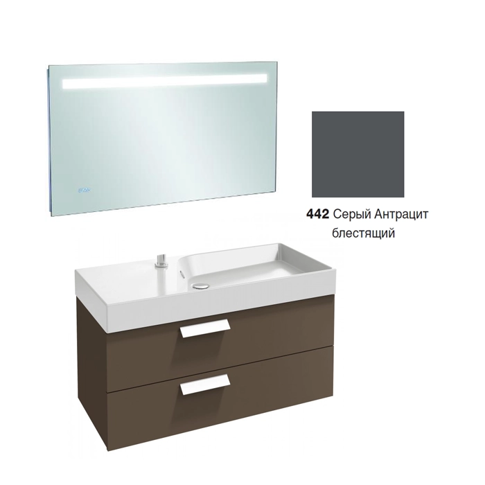 Rythmik 100см, комплект мебели для ванной, подвесной монтаж, серый антрацит лак, подсветка, анти-пар, часы, арт. EB1161-NF+EXN112-Z-00+EB1304-442, Jac
